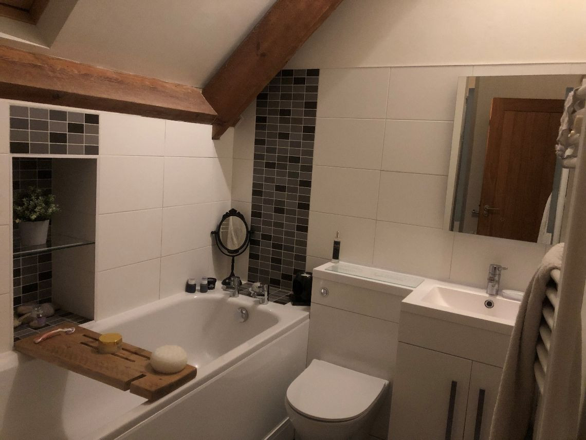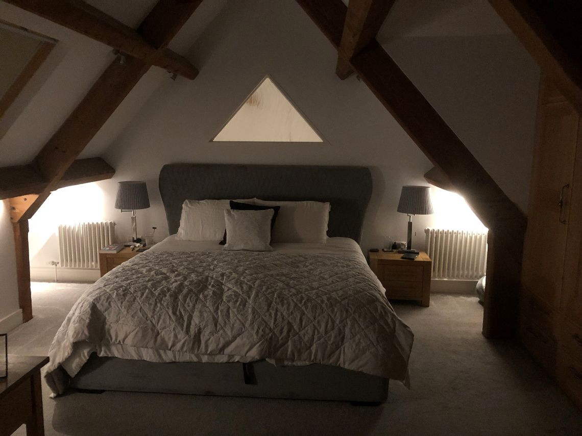 There are 3 large bedrooms built into a mezzanine floor which was created as part of the conversion, each with open beams.