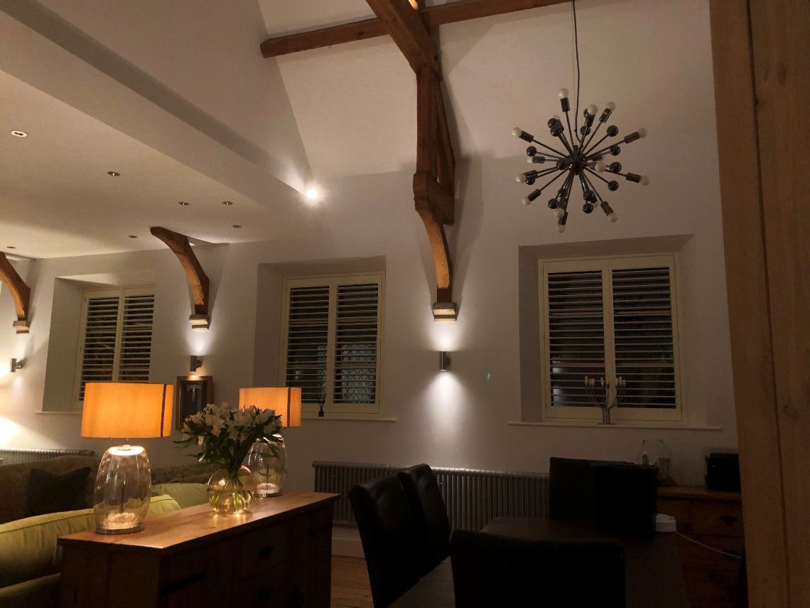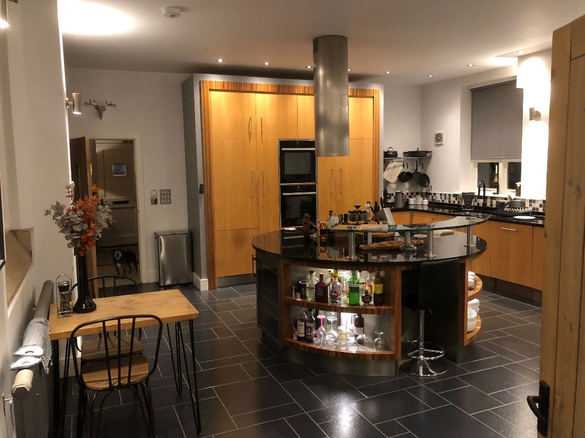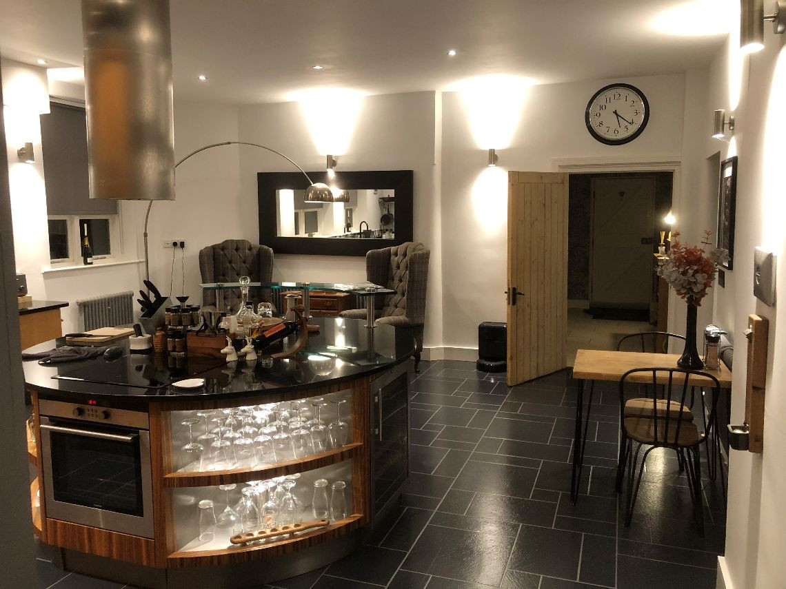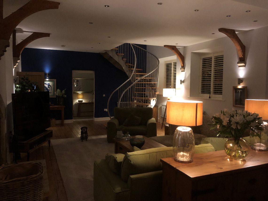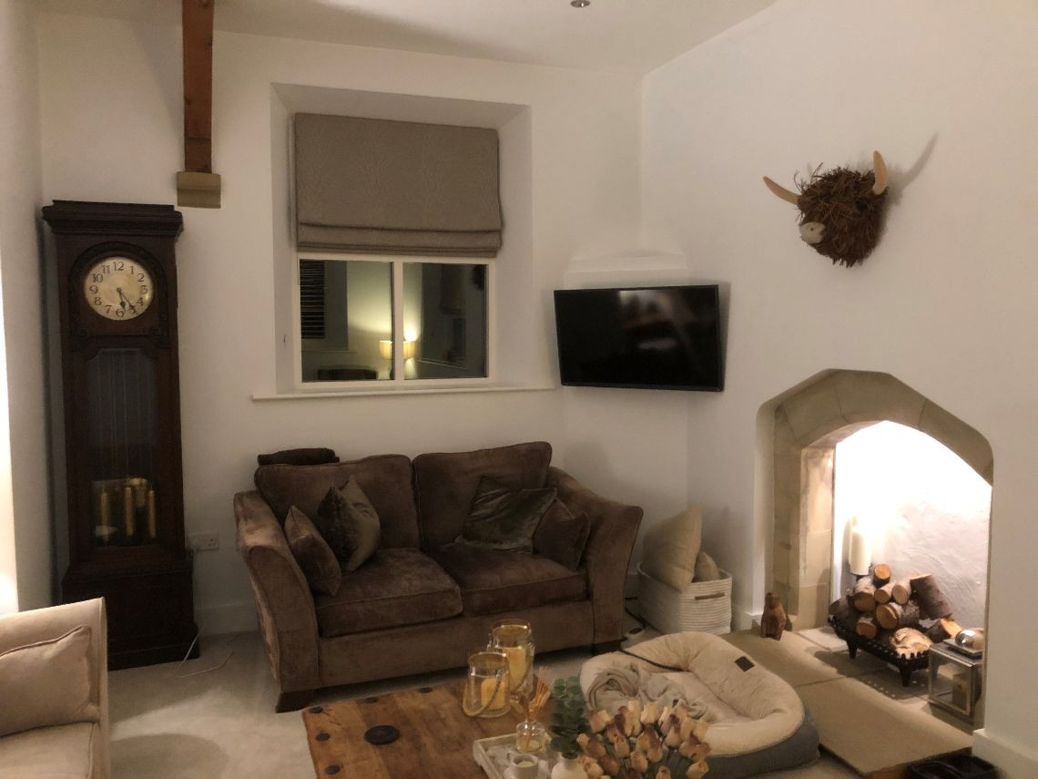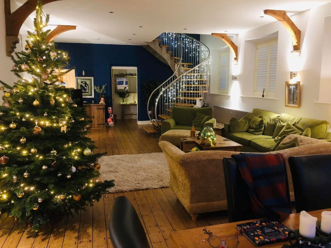 There are 3 large bedrooms built into a mezzanine floor which was created as part of the conversion, each with open beams. There are two lounges (one of which is the original classroom and is much larger than the other and with partial double height+ ceiling, large woodburning stove and bespoke staircase), again with open beams and a large kitchen. The house also has a utility room, office, and three small bathrooms.