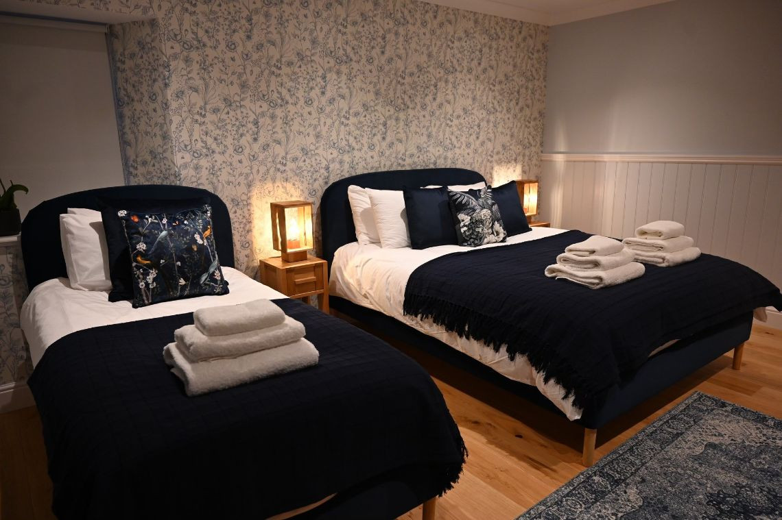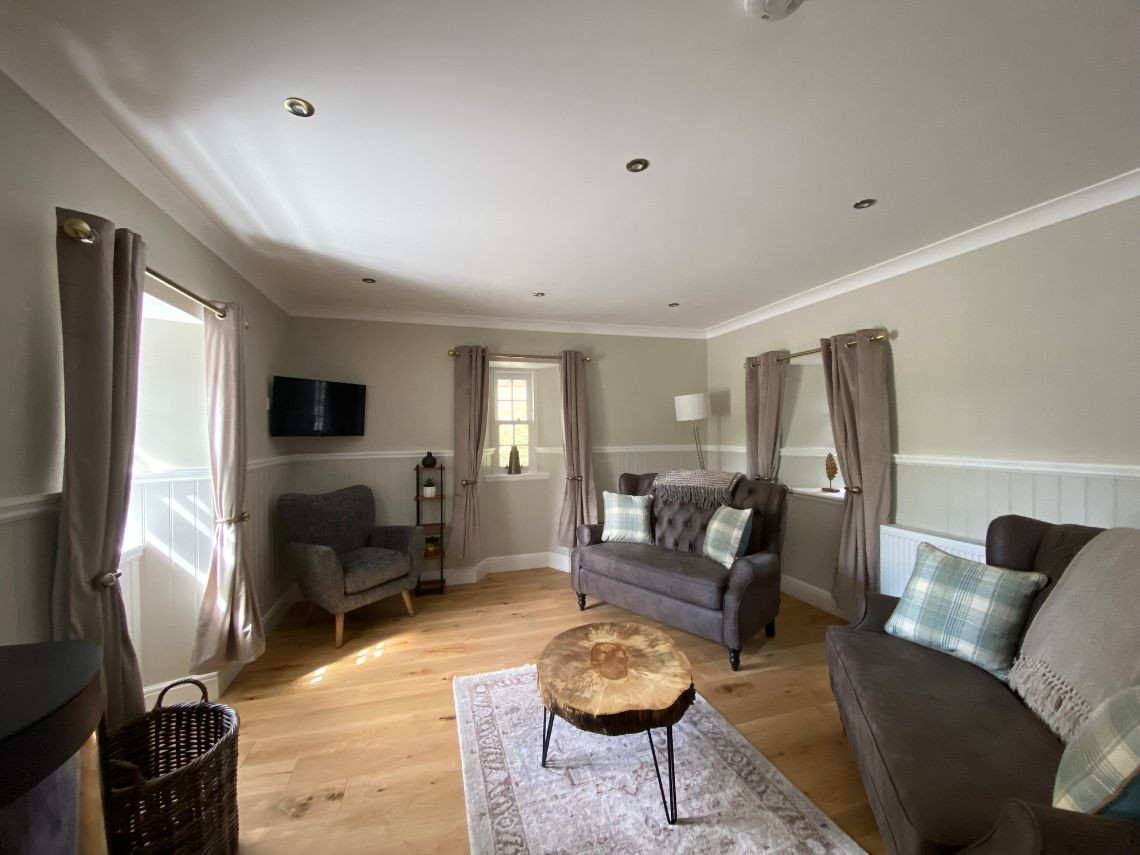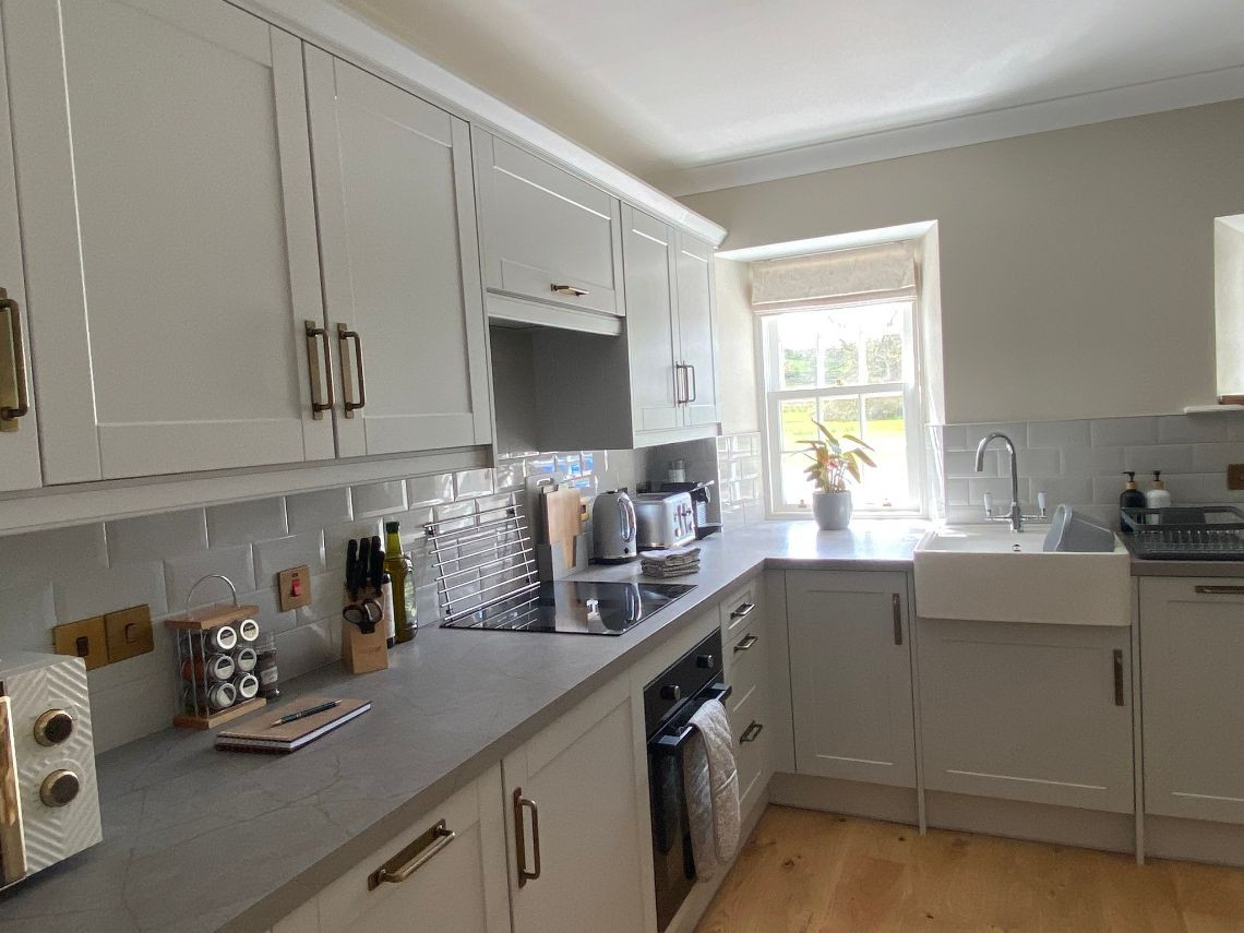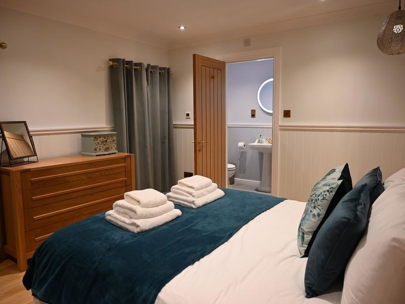 Self-catering cottage can sleep up to five guests in two bedrooms. The master bedroom has a king-sized bed and en-suite shower room ; the second bedroom has one king-sized bed and one single bed. There is also a family bathroom with over-bath shower. New open-plan kitchen / living room.
