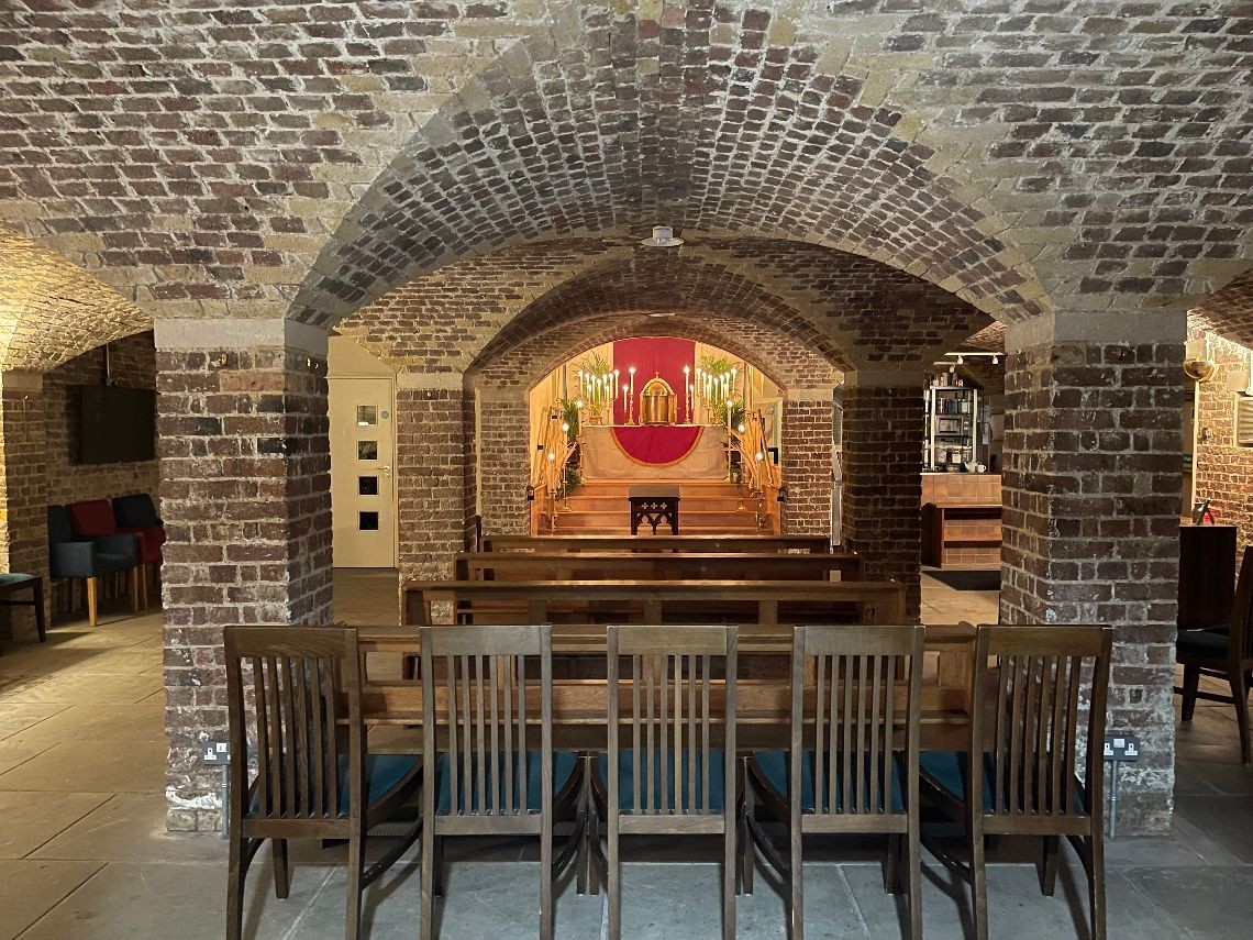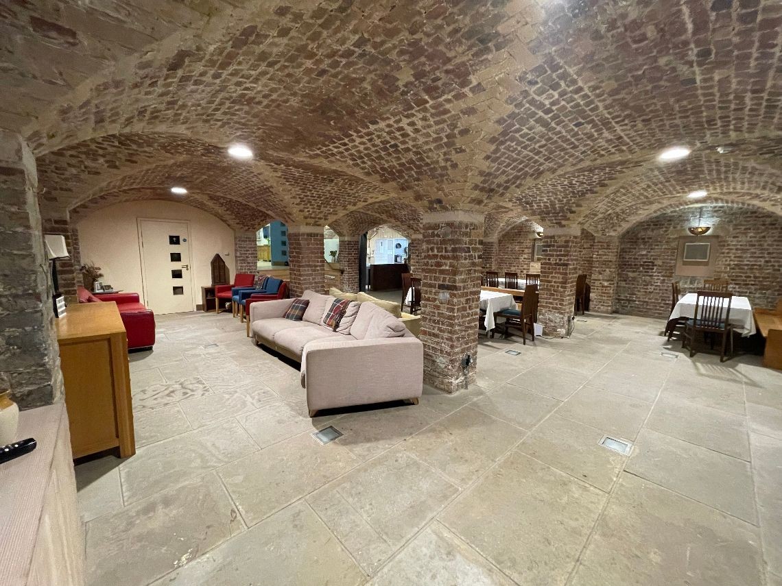 The space offers a the series of rooms beneath the church, for use in filming, or as a green room. Kitchen facility available