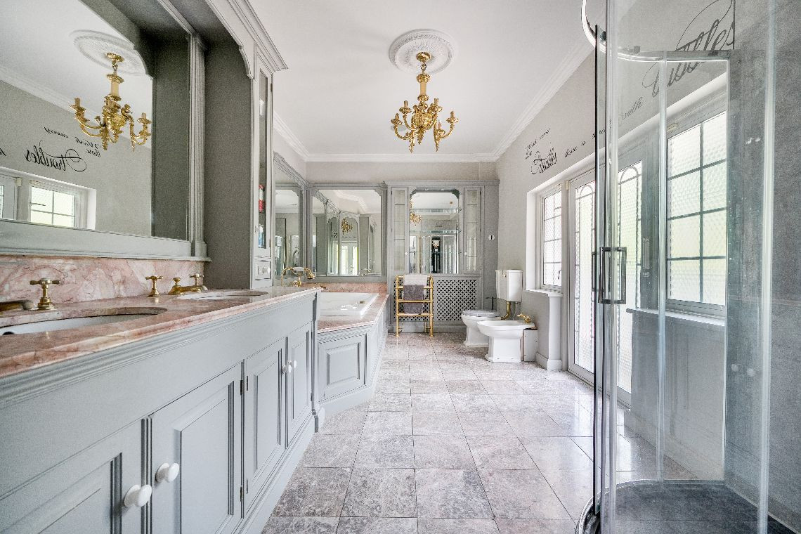 The property has 15 rooms including 6 bedrooms, 13 bathrooms. The property has an Olympic size swimming pool, 1,000 sqf pub, a podcast studio and an indoor football pitch.