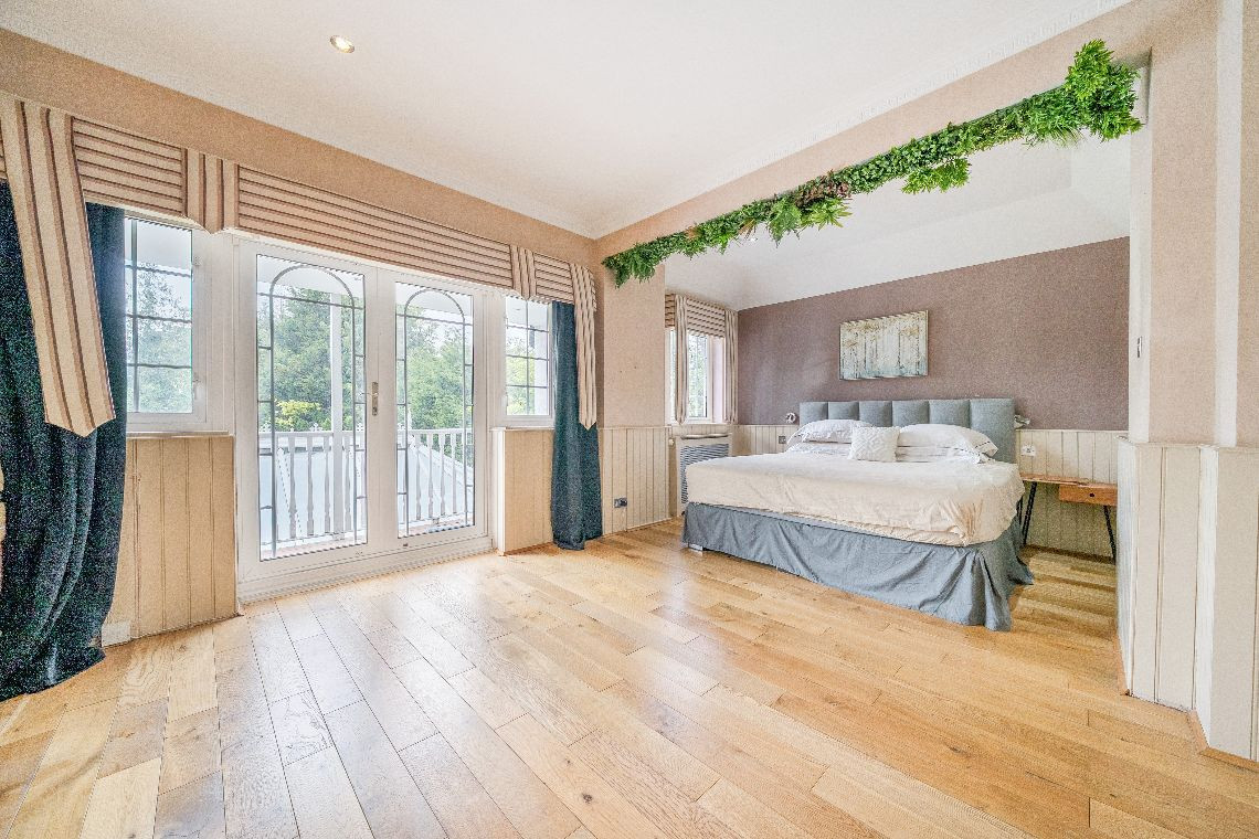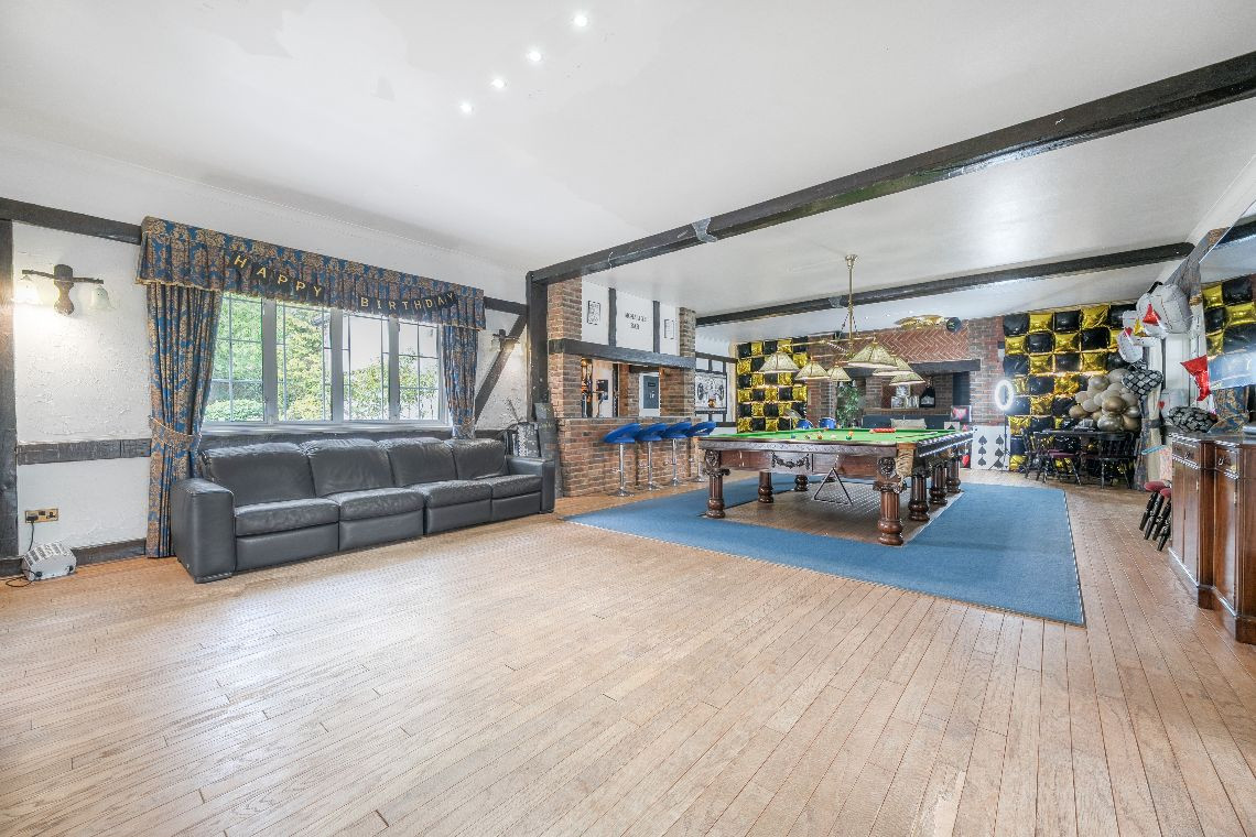 Sits on a 1.5 acre plot as part of a private gated community. It has enough private parking for 25+ vehicles and has a 3 phase electrical supply. On the outside it has landscaped gardens and a full size tennis court.