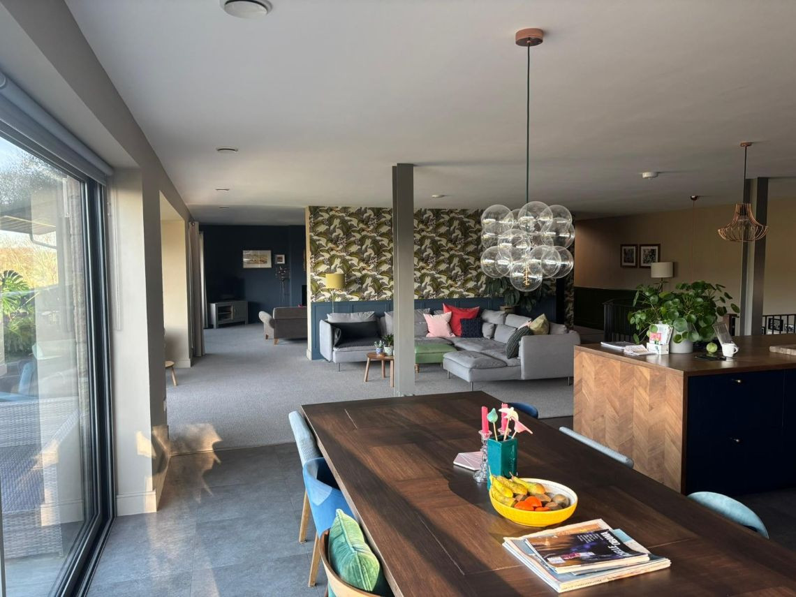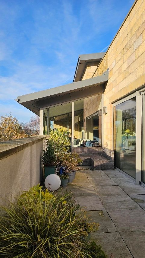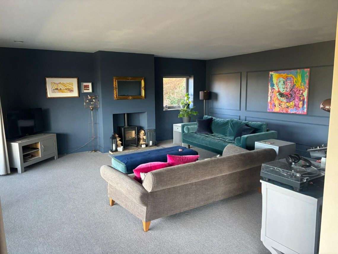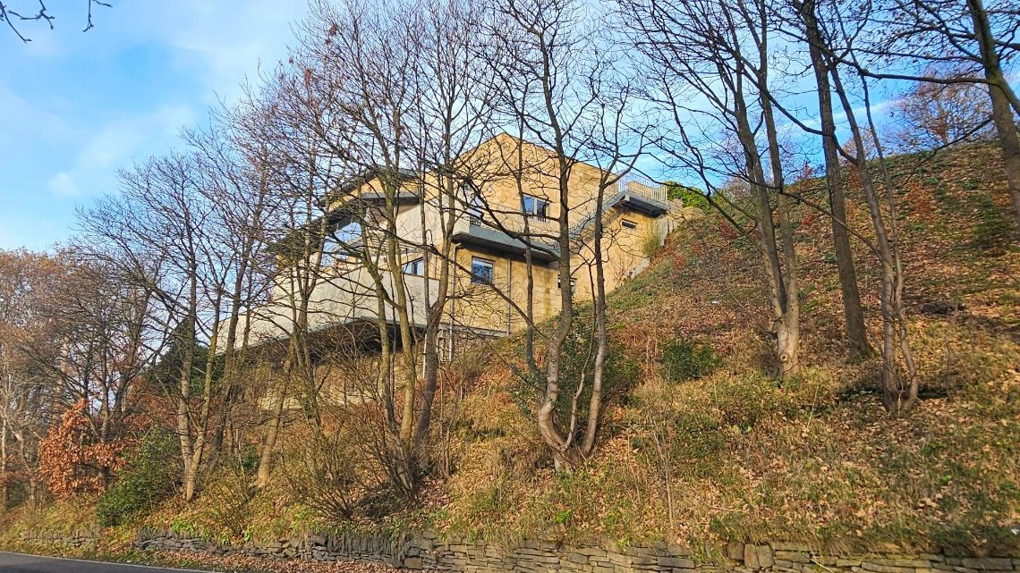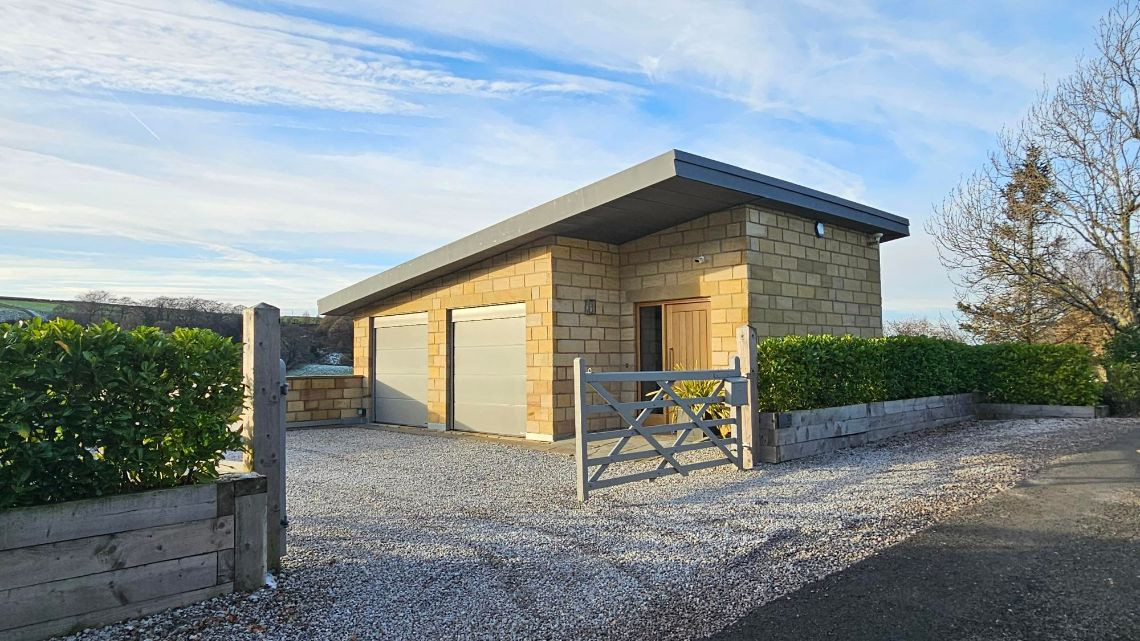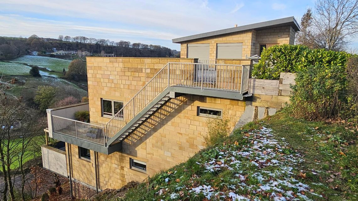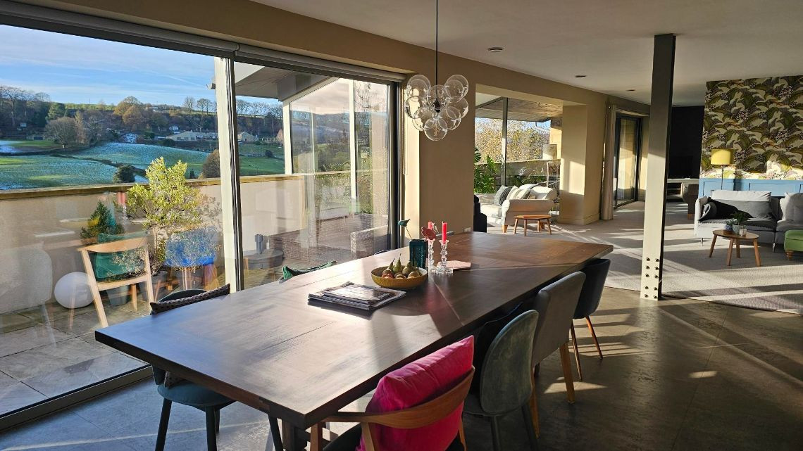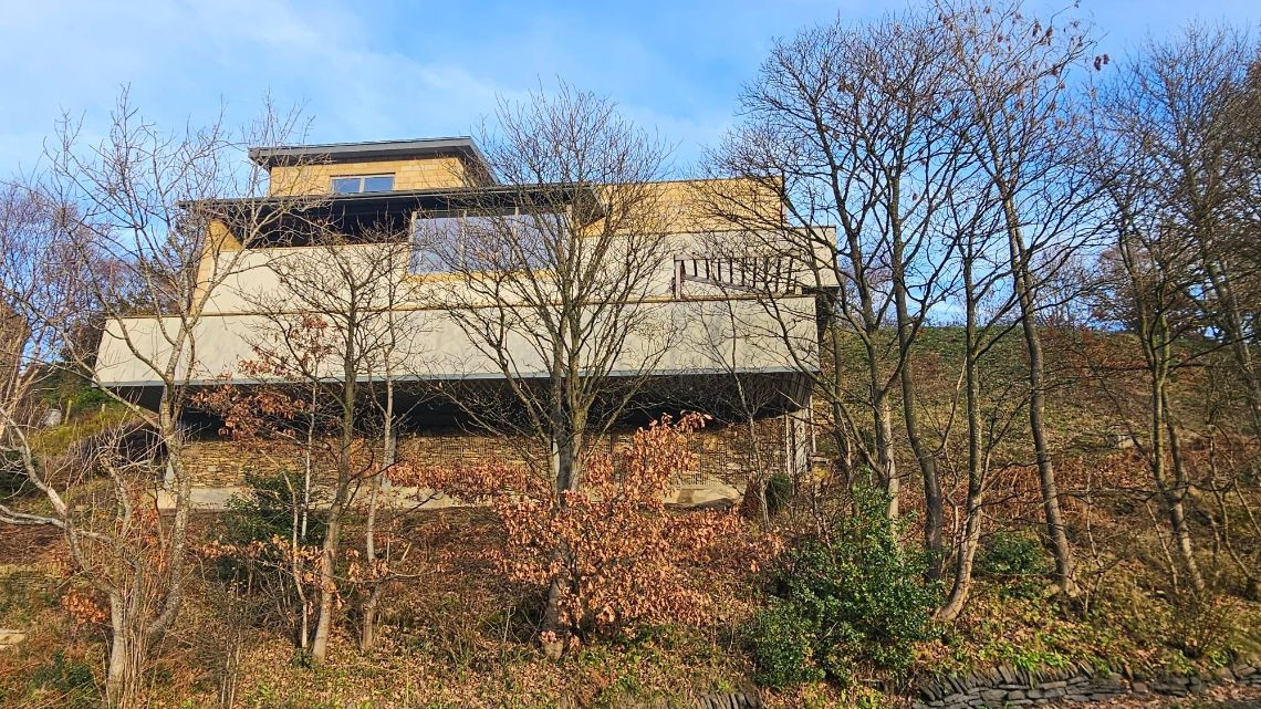 A recent self build house built into a hillside with excellent views of the countryside set in an acre of land available for filming and video shoots