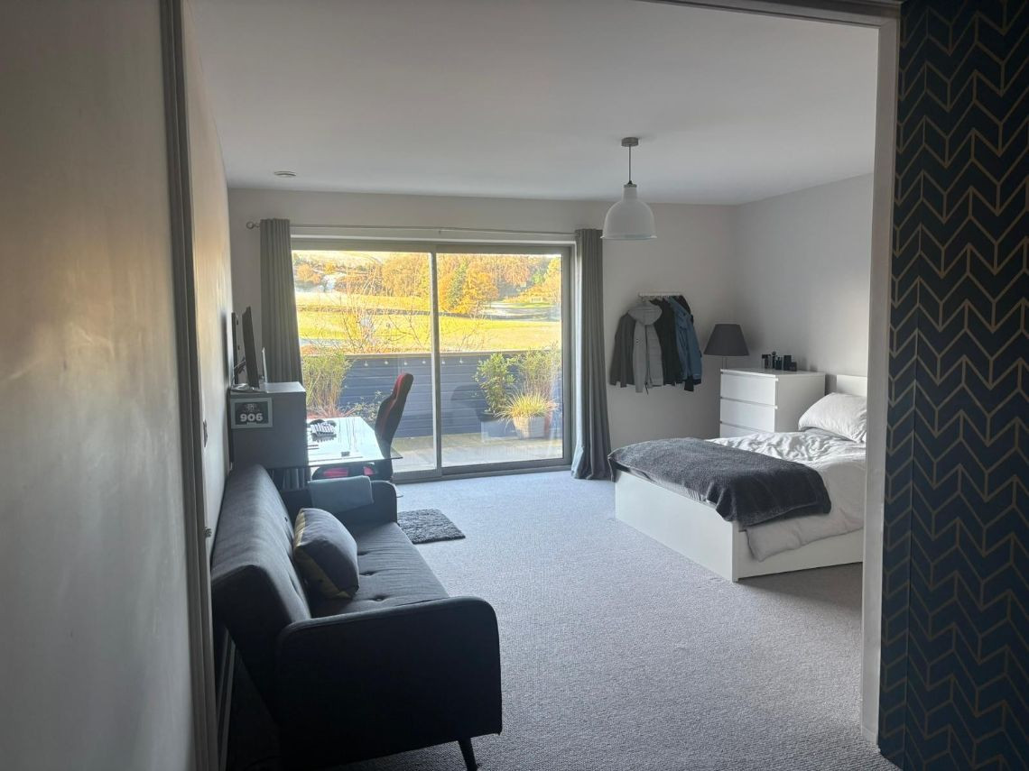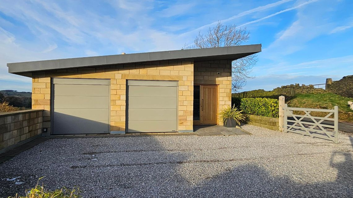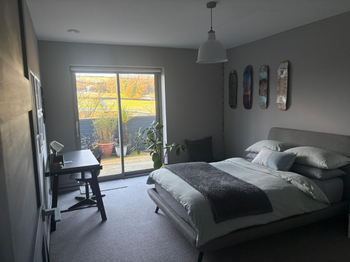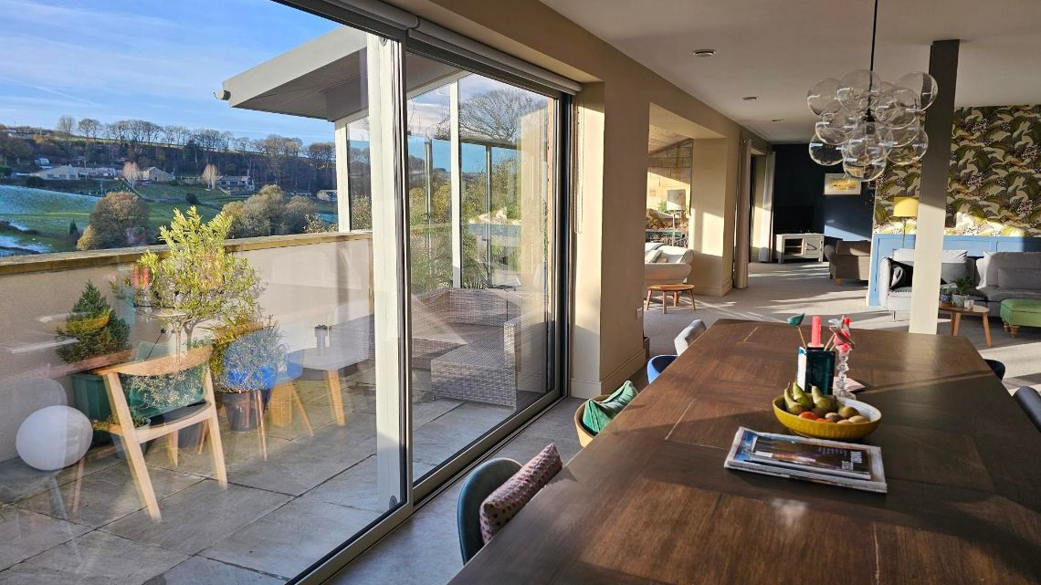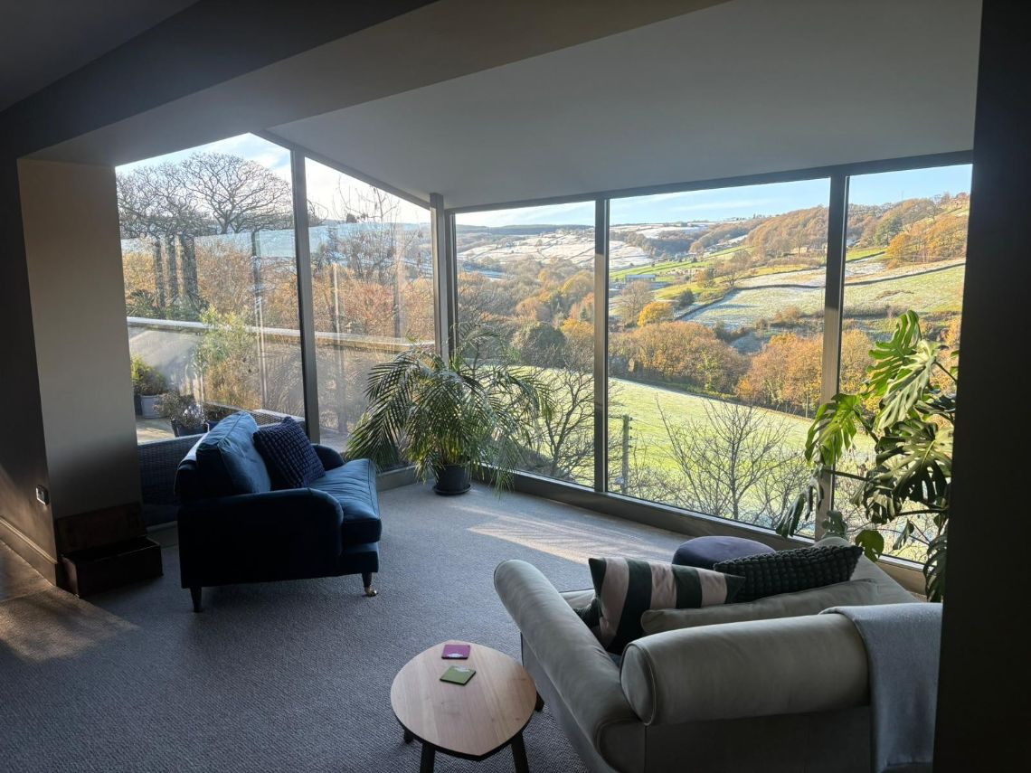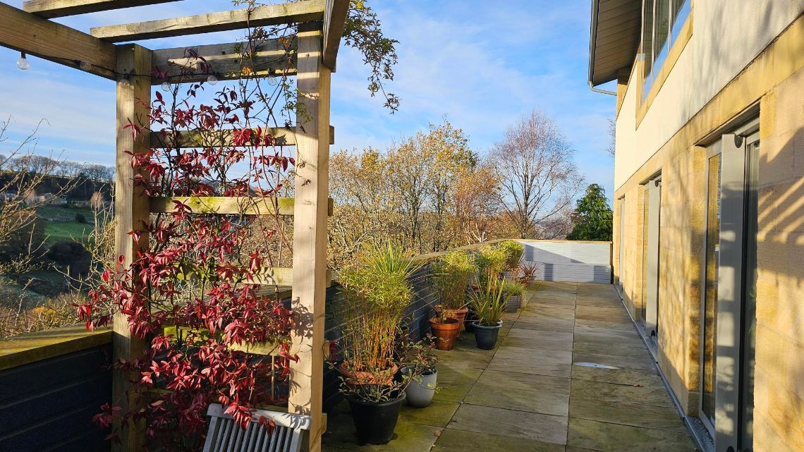 A recent self build house built into a hillside with excellent views of the countryside set in an acre of land available for filming and video shoots