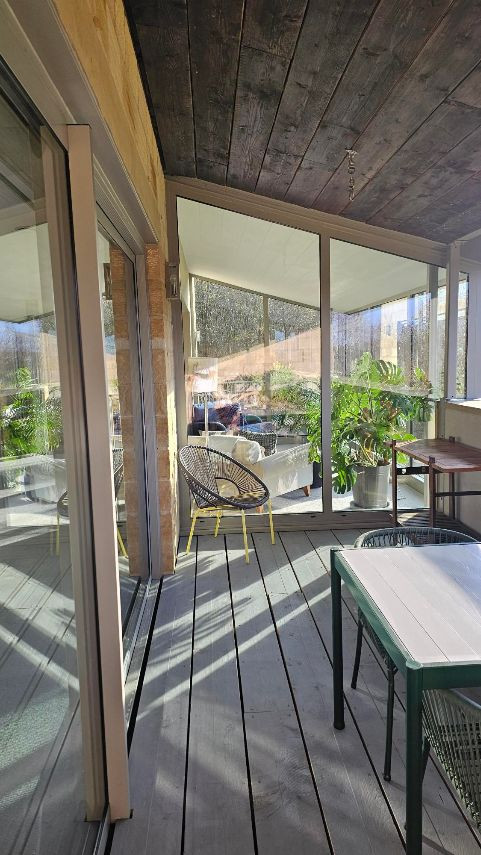 The house is upside down, with living space on the first floor and bedrooms on the lower ground floor, with parking on the roof. The top of the building is the entrance and garage and has parking for 6 vehicles. The bedrooms and living space have access to a balcony and the living space is approx 450m2.