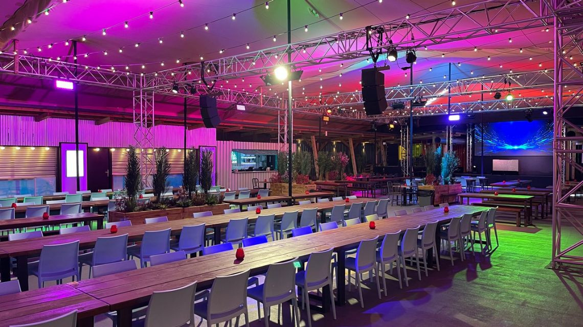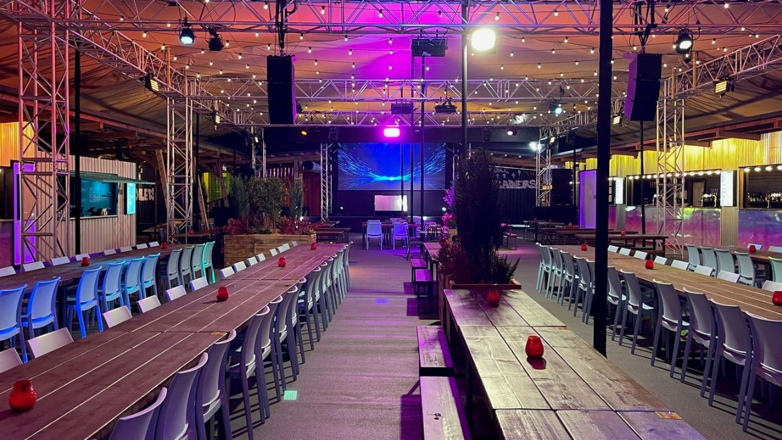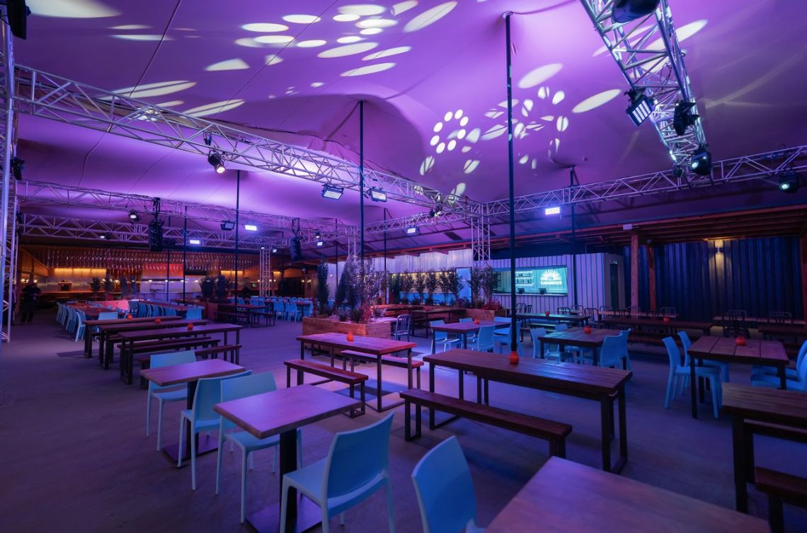 Large events space with several bars and seating areas. Largest space offers long banked seating arrangements, with a 7.5m stage and 5.5m LED screen. Professional systems from Kling and Freitag are installed and available to use. Overall the venue can hold 1000 people.