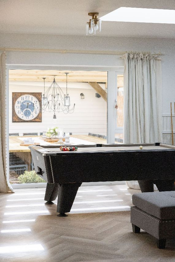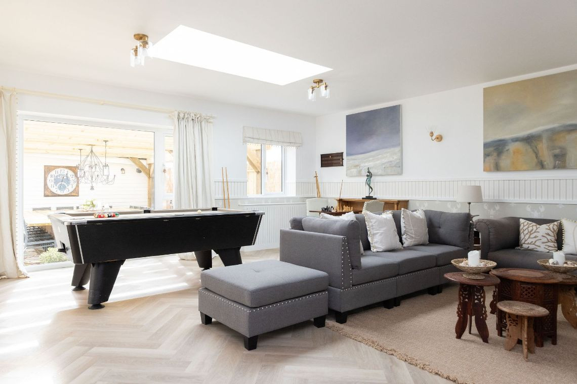 Large and luxurious, sleeps 22 across 11 cool, coastal-inspired bedrooms. Nine are en-suite, while a family room on the ground floor features a master bedroom, an adjoining children’s bunk room, and a shared family bathroom.