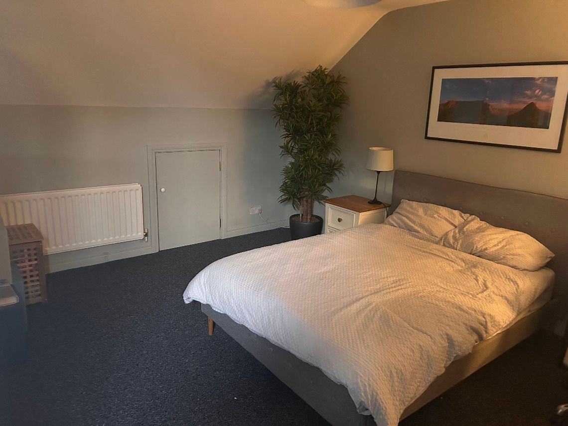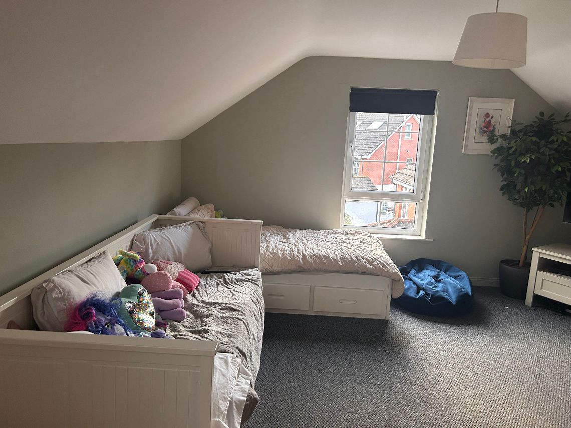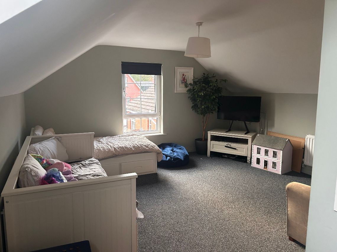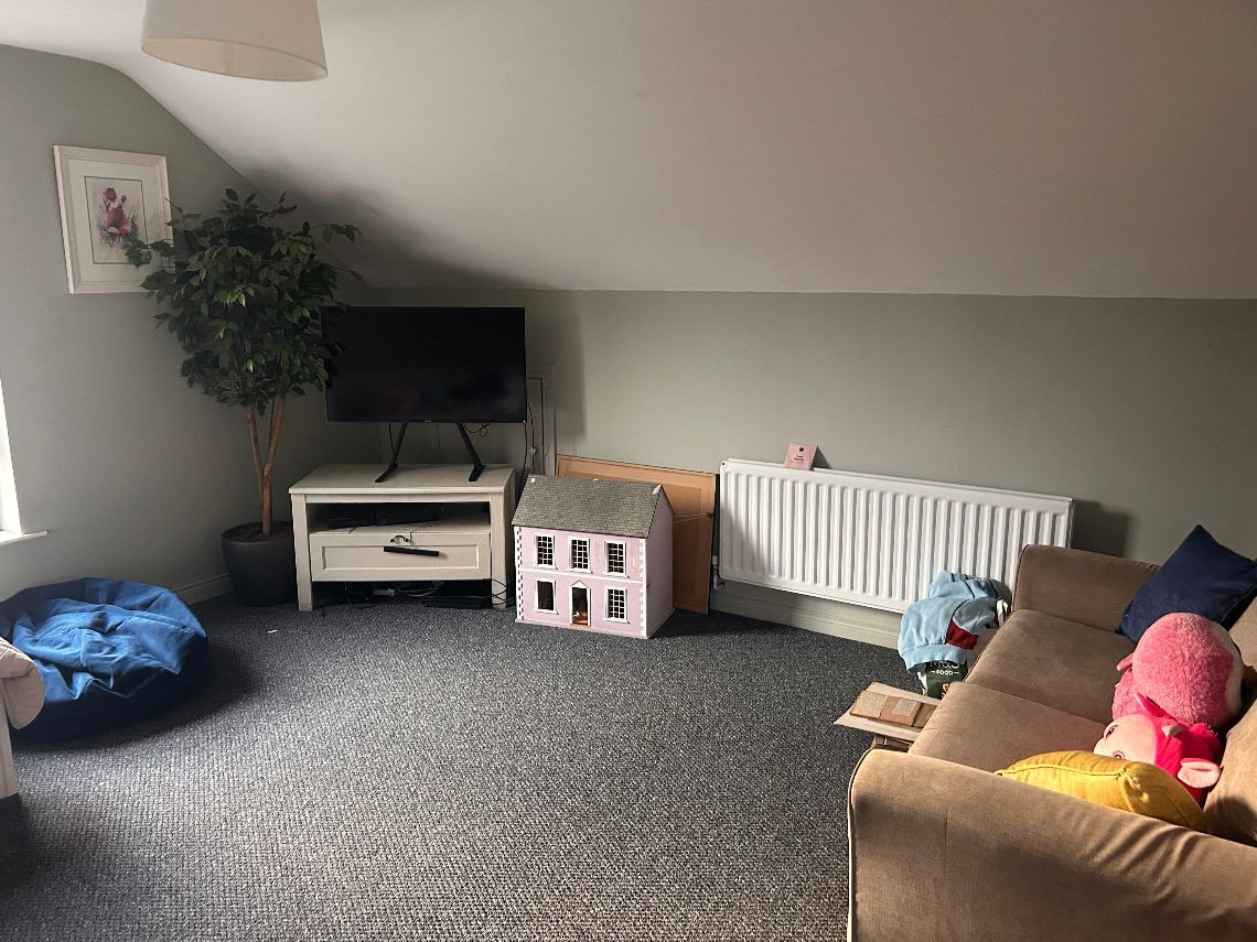 It’s a 6 bed property, the top floor is two rooms but they have no dividing wall. There are two bathrooms and a toilet on bottom floor. There is a utility room off the kitchen and a living area off the kitchen