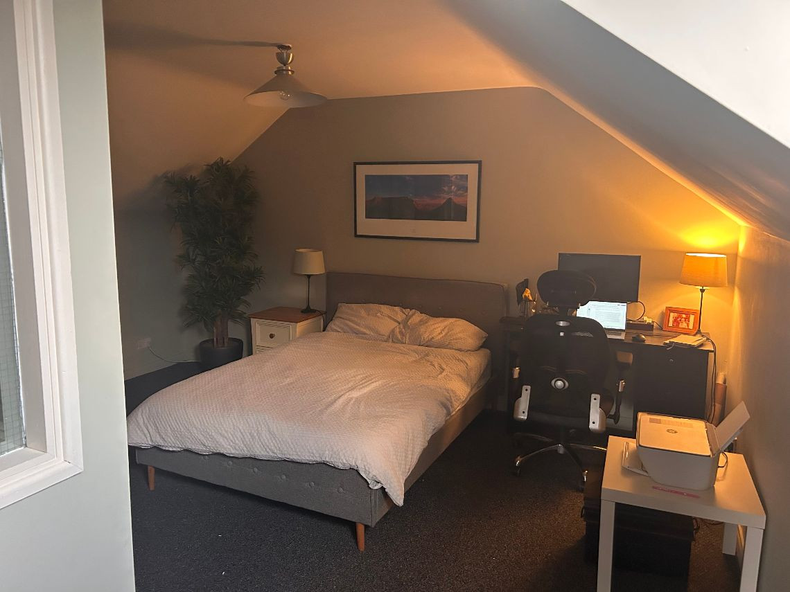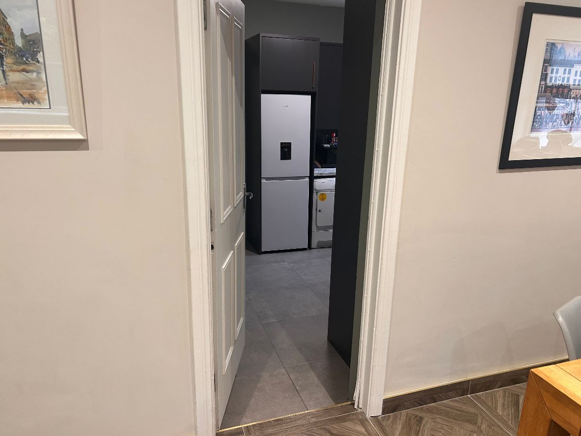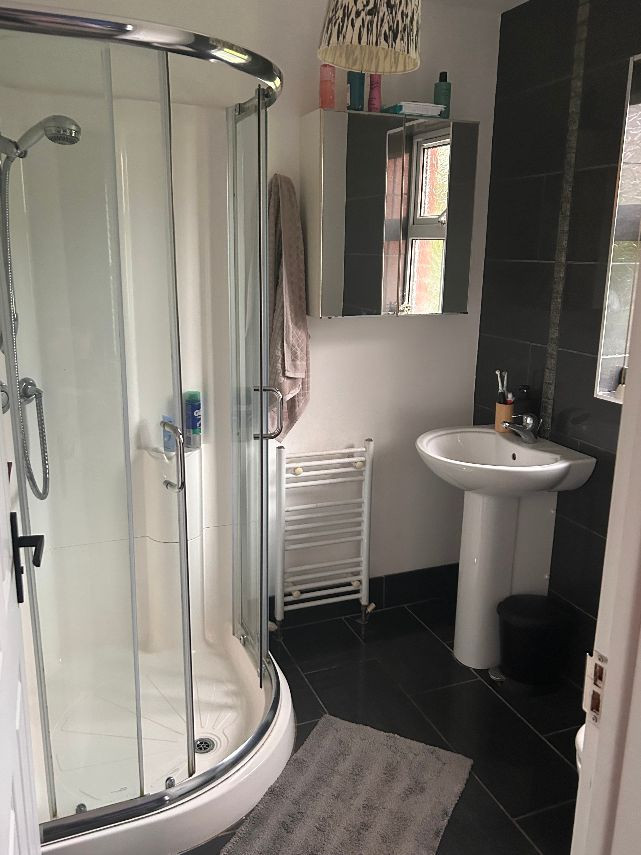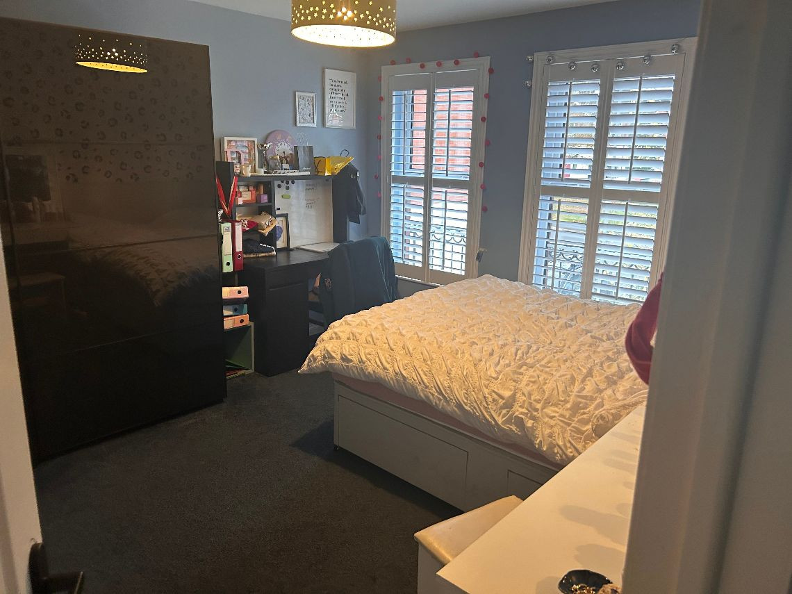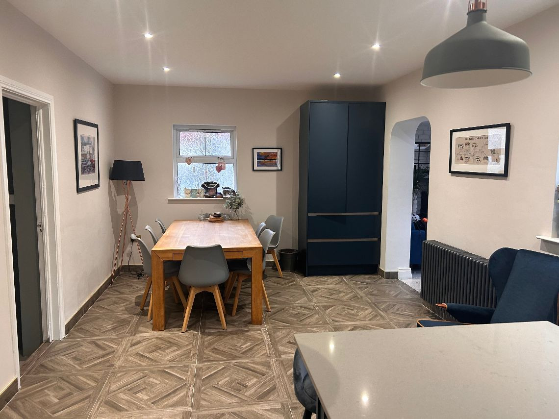 It’s a 6 bed property, the top floor is two rooms but they have no dividing wall. There are two bathrooms and a toilet on bottom floor. There is a utility room off the kitchen and a living area off the kitchen