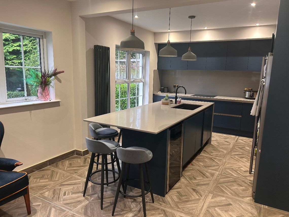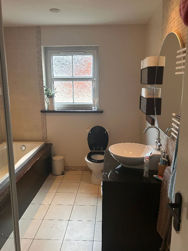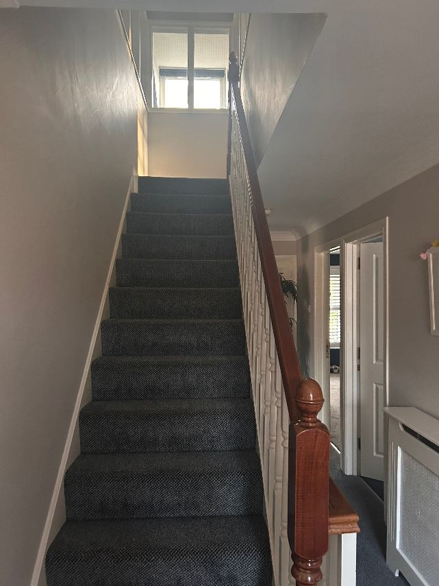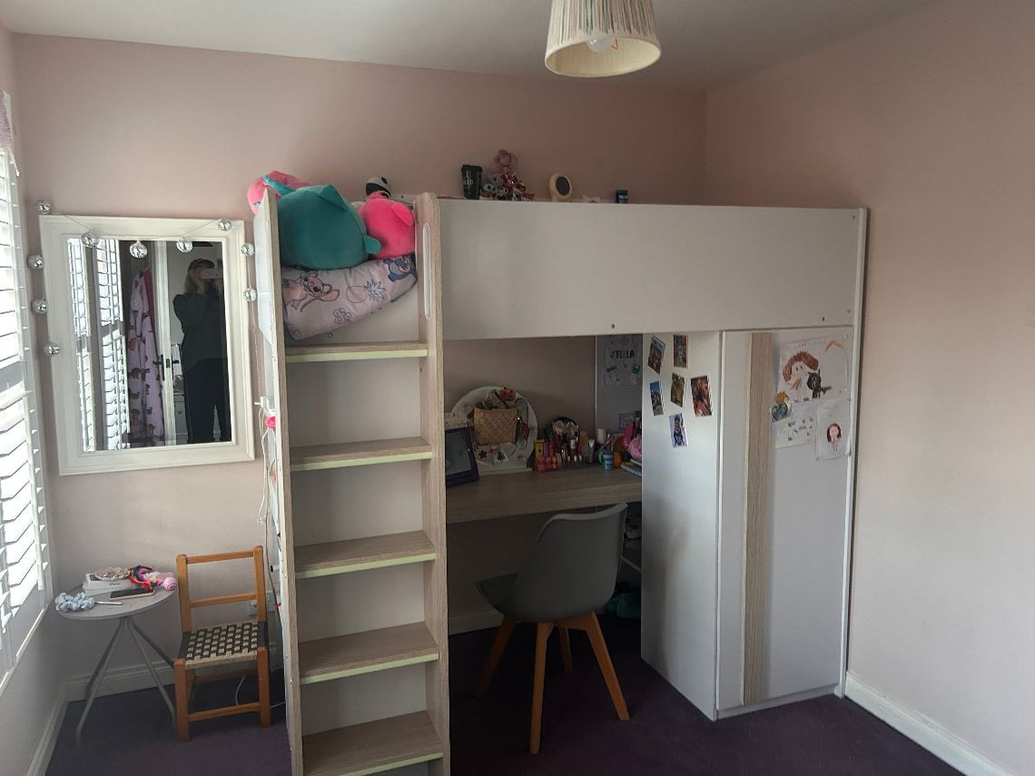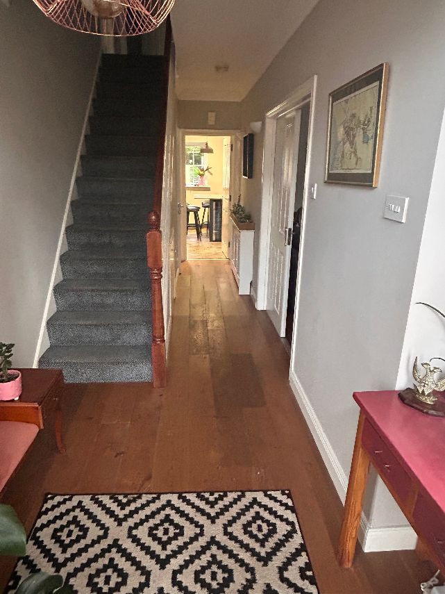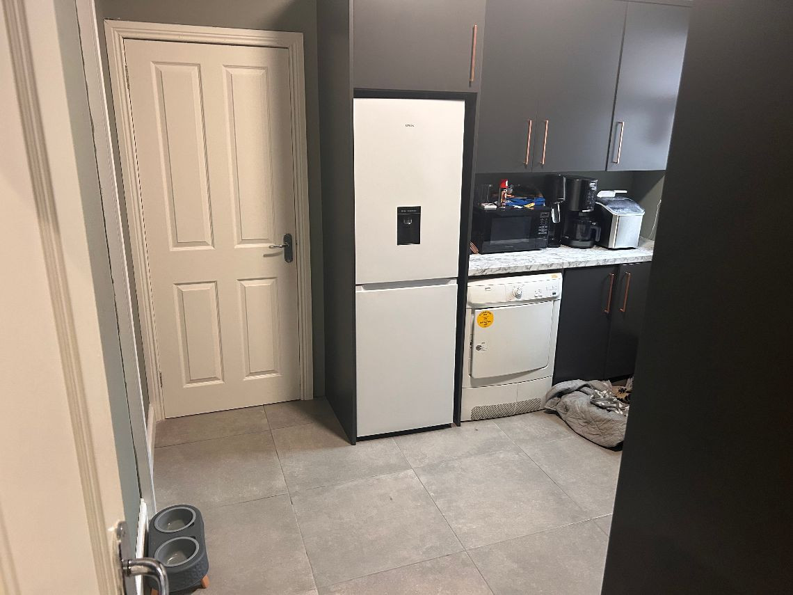 It’s a 6 bed property, the top floor is two rooms but they have no dividing wall. There are two bathrooms and a toilet on bottom floor. There is a utility room off the kitchen and a living area off the kitchen