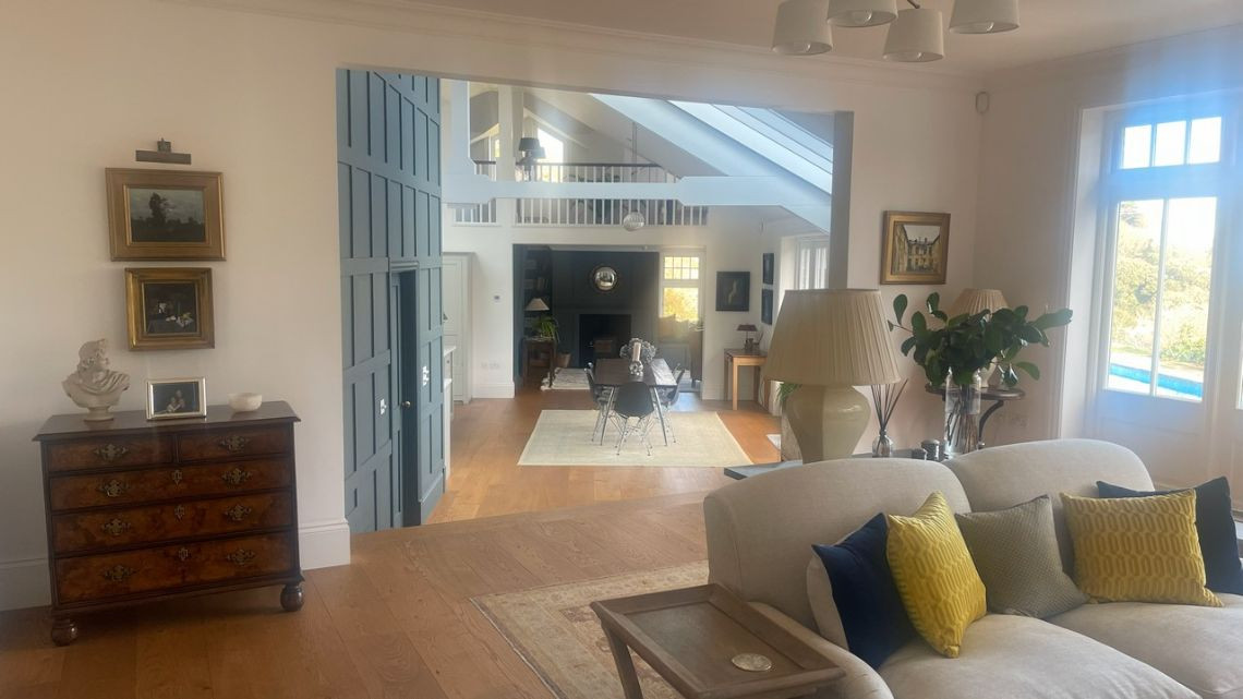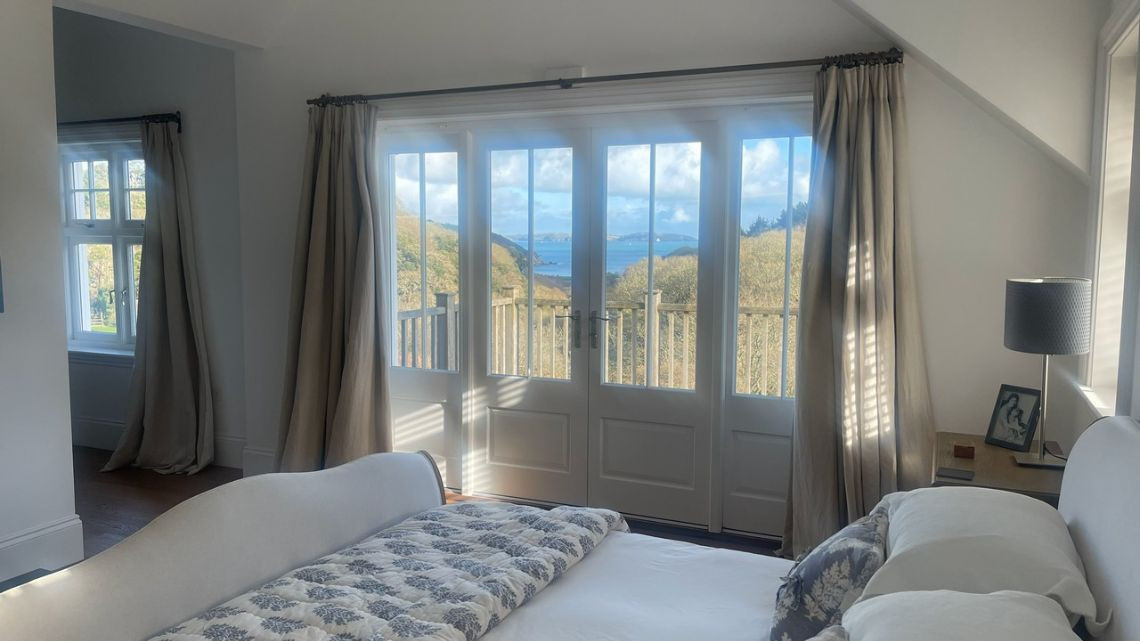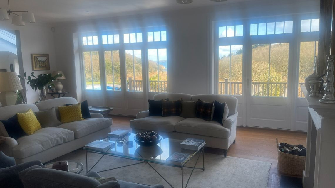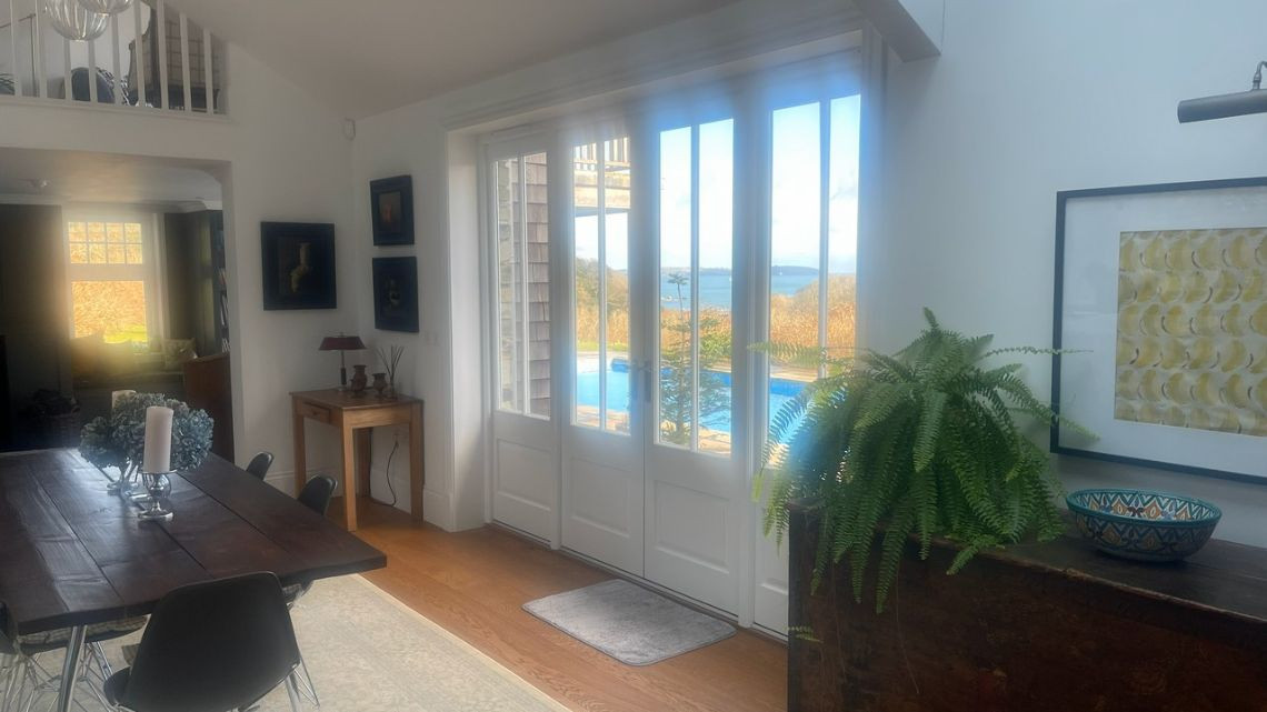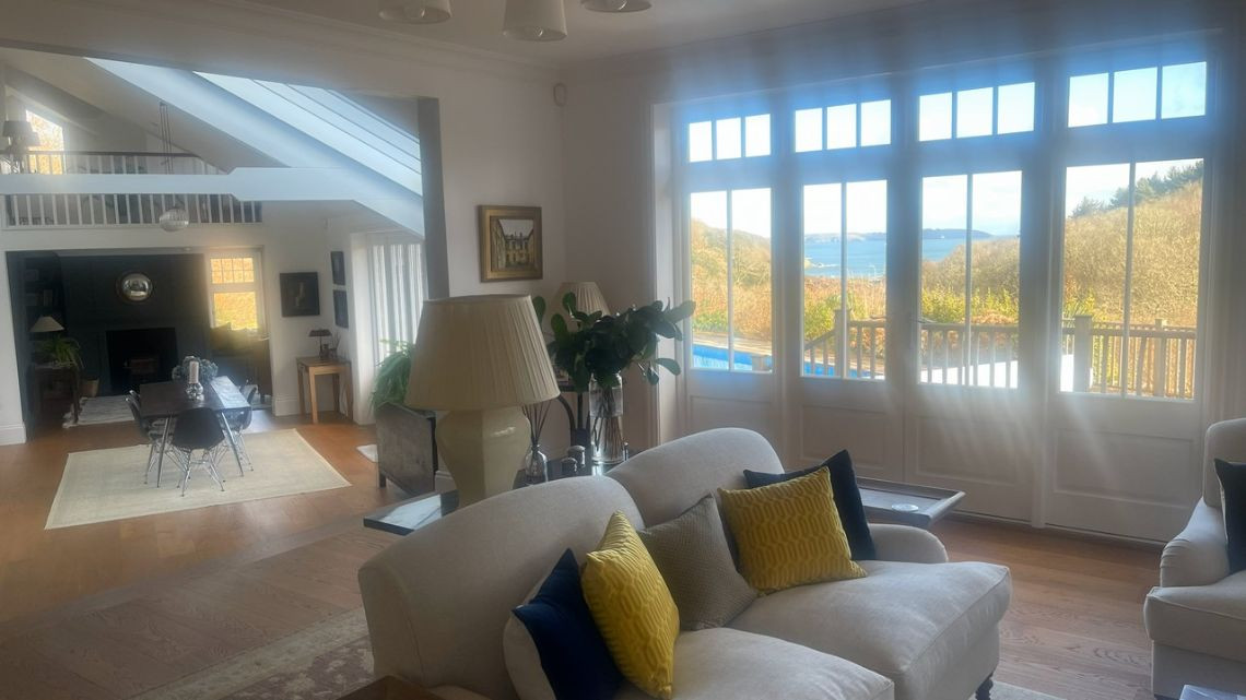 A light filled beautiful home with a timeless neutral colour palette available for filming. There are several entertaining rooms with views out to the country and sea. The dine in kitchen has a large island and long unique skylights, filling the room with natural light.