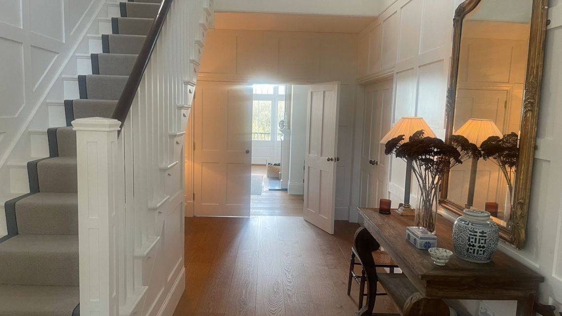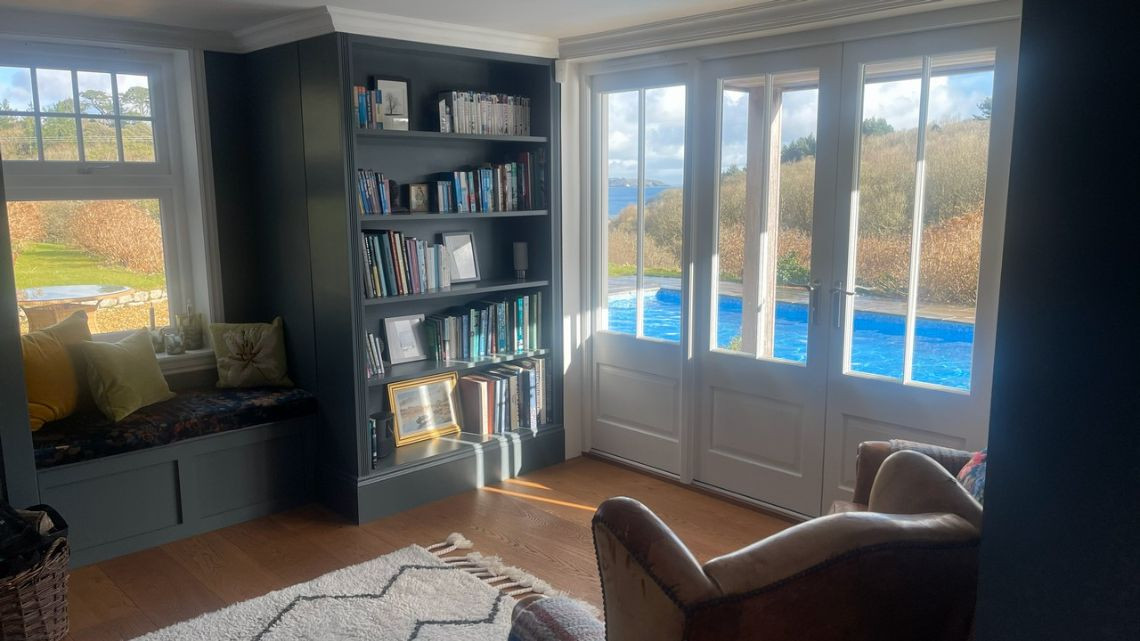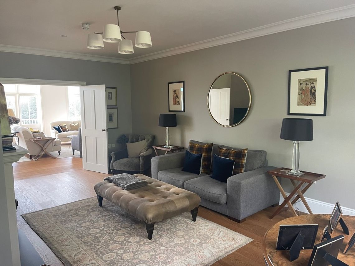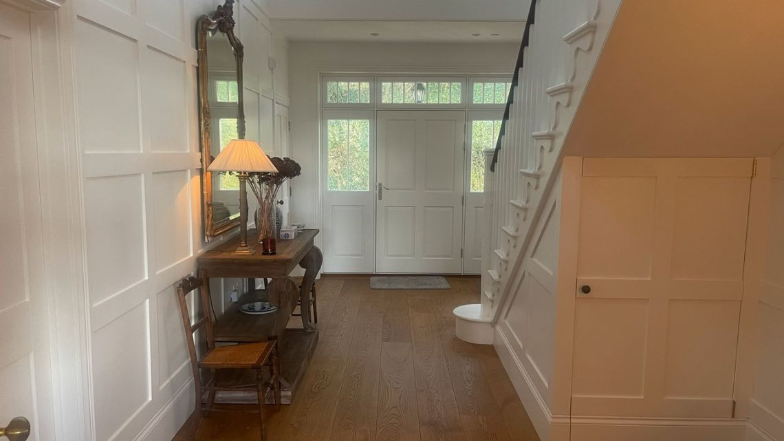 A light filled beautiful home with a timeless neutral colour palette available for filming. There are several entertaining rooms with views out to the country and sea. The dine in kitchen has a large island and long unique skylights, filling the room with natural light.