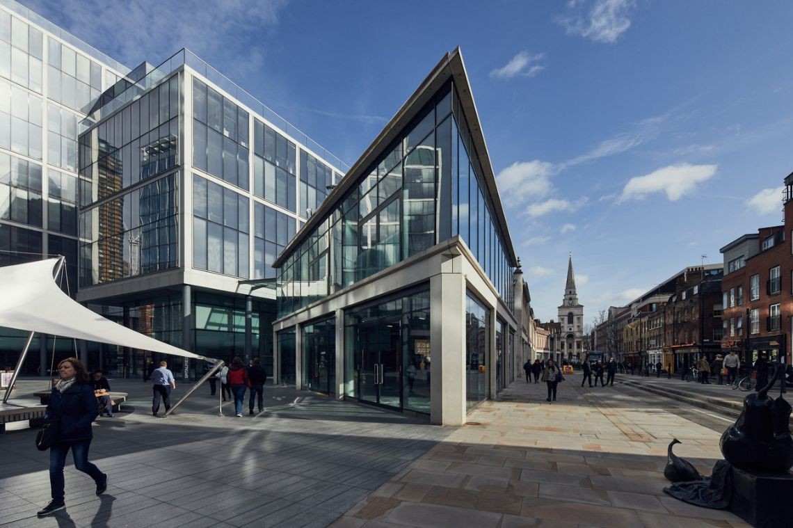 The Ground floor has double door access on both sides. Double-width windows open up onto views of the square. The Basement consists of a stripped back concrete space totalling just over 3000sq ft. The space has a series of intersecting vertical concrete columns and a black spray finished exposed ceiling.