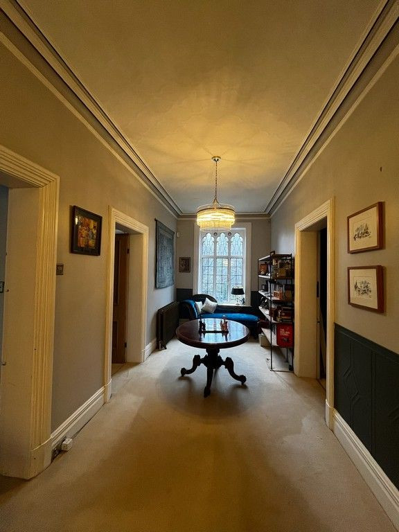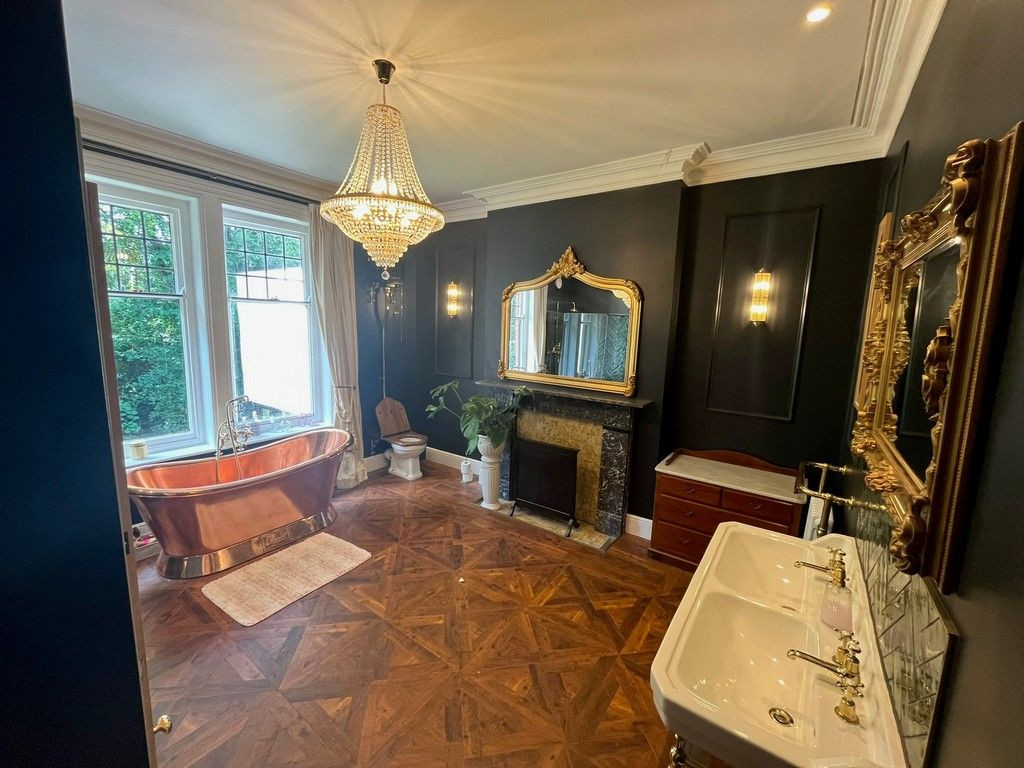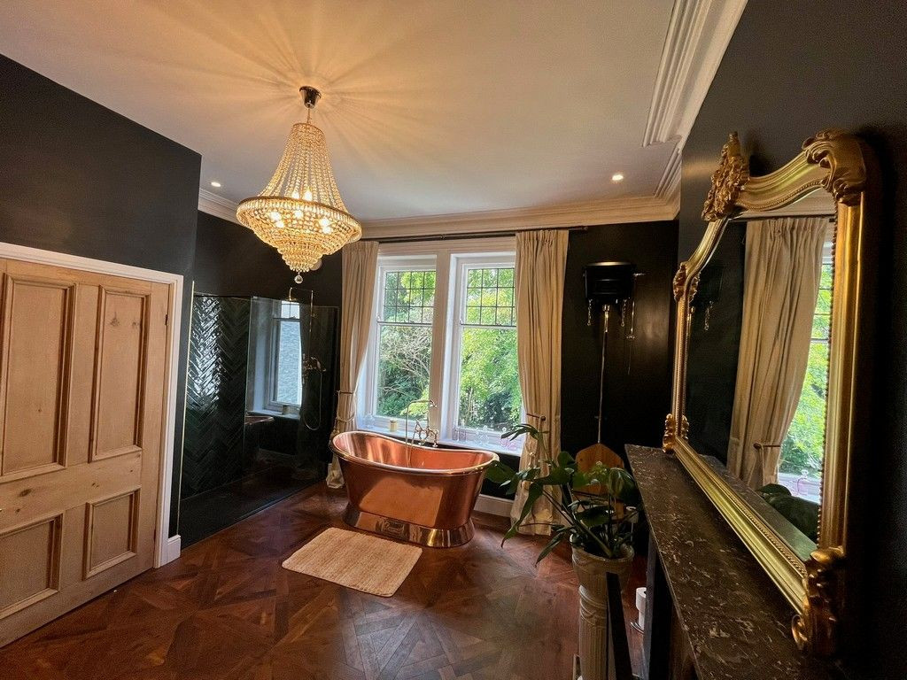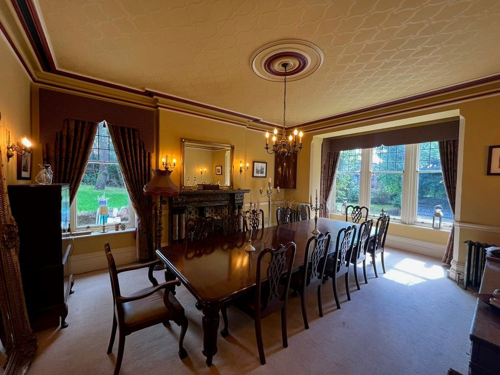 Grand Victorian Detached residence built by a local mill owner and town Mayor in 1888. The property is set in an acre of land with a mix of both manicured gardens and woodland areas. Surrounded by mature trees and farm land. Two separate drive ways lead to ample car parking space to both the front, and the rear courtyard area. Separate outbuildings and pond with Monet style bridge.