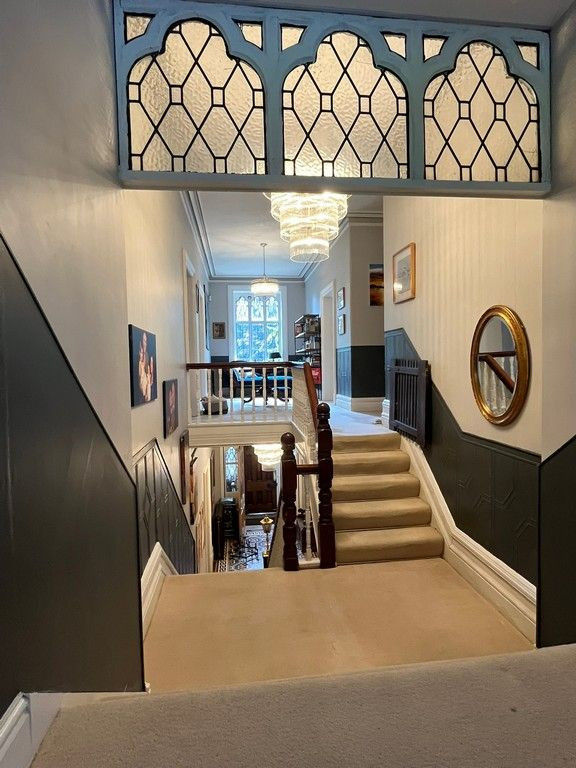 - Built in 1888 and retaining Victorian period interiors with original mosaic tiled entrance hallway, marble fireplaces, skirting boards and coving, leaded sash bay windows, servants bell system.
