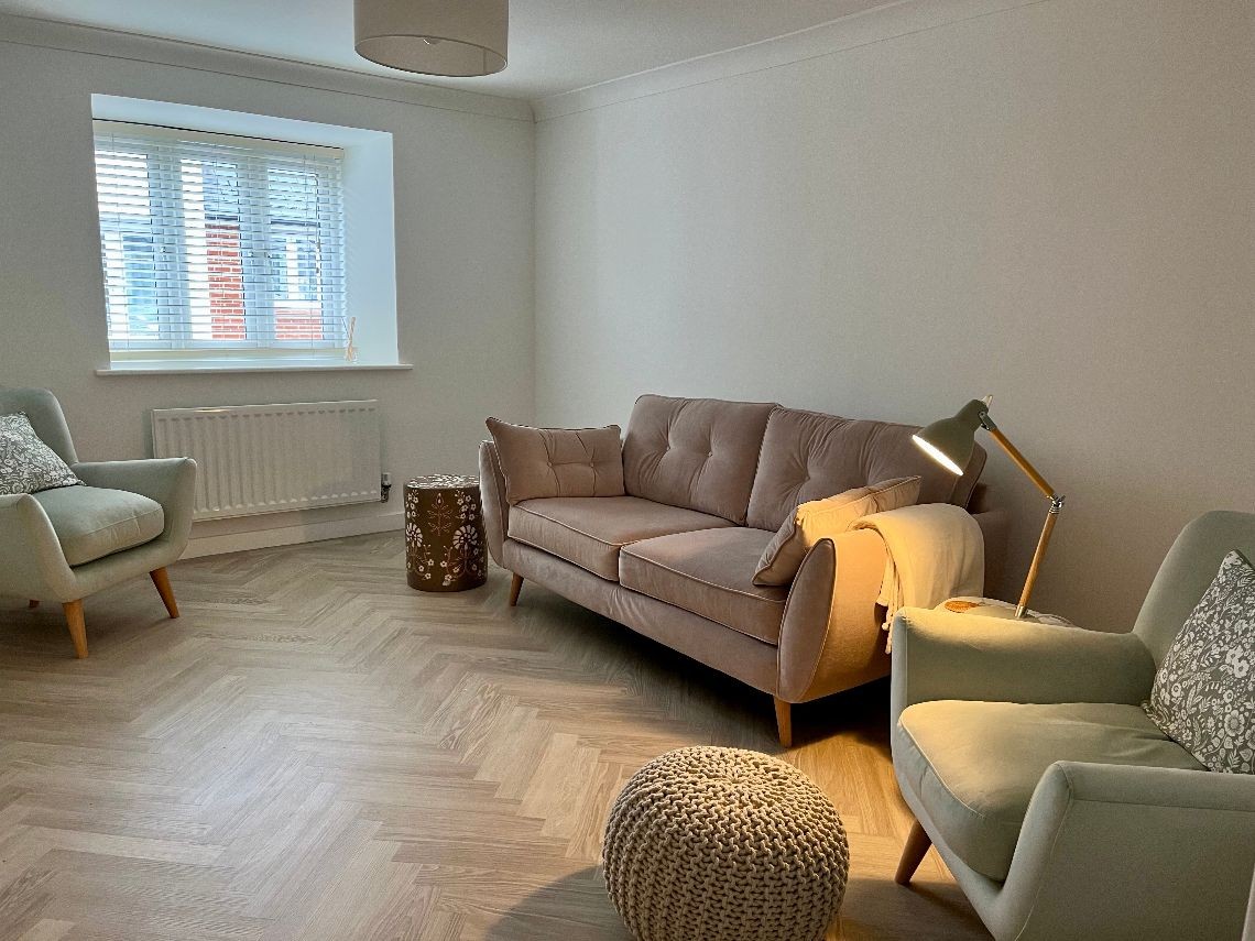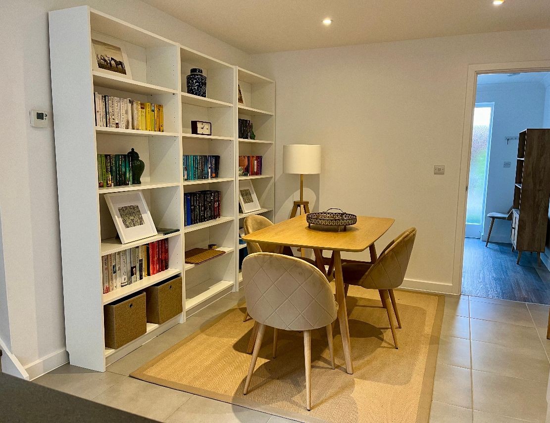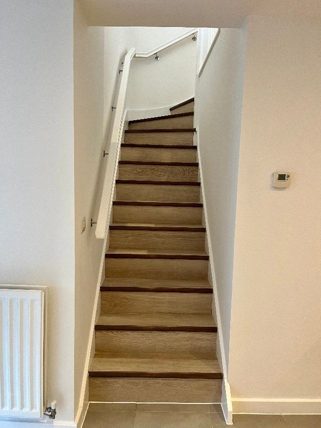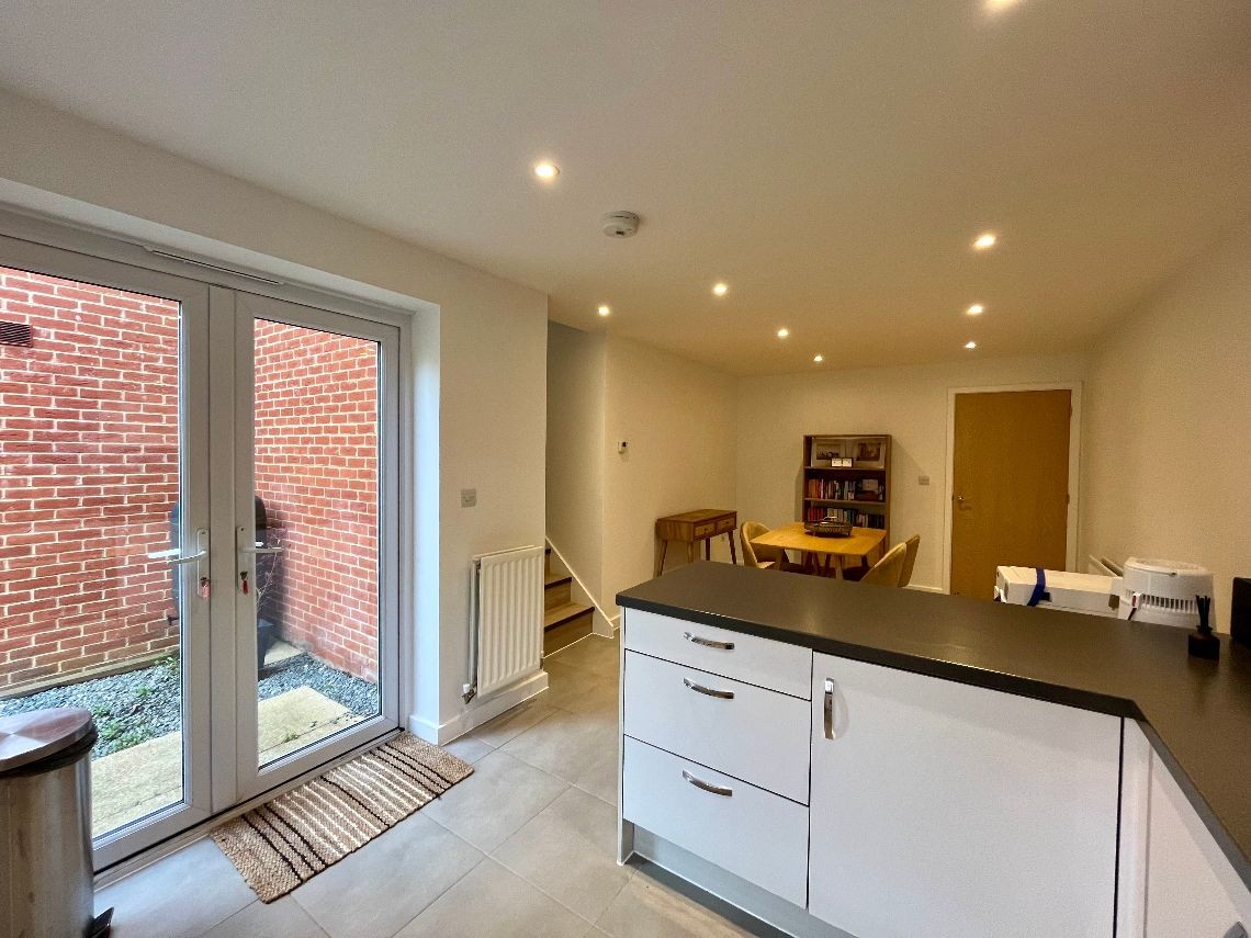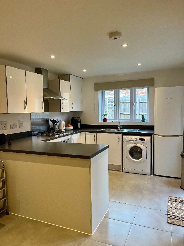 Modern two-story terrace house on quiet cul de sac. Open plan kitchen/diner, upstairs living room, master bedroom and dressing room.