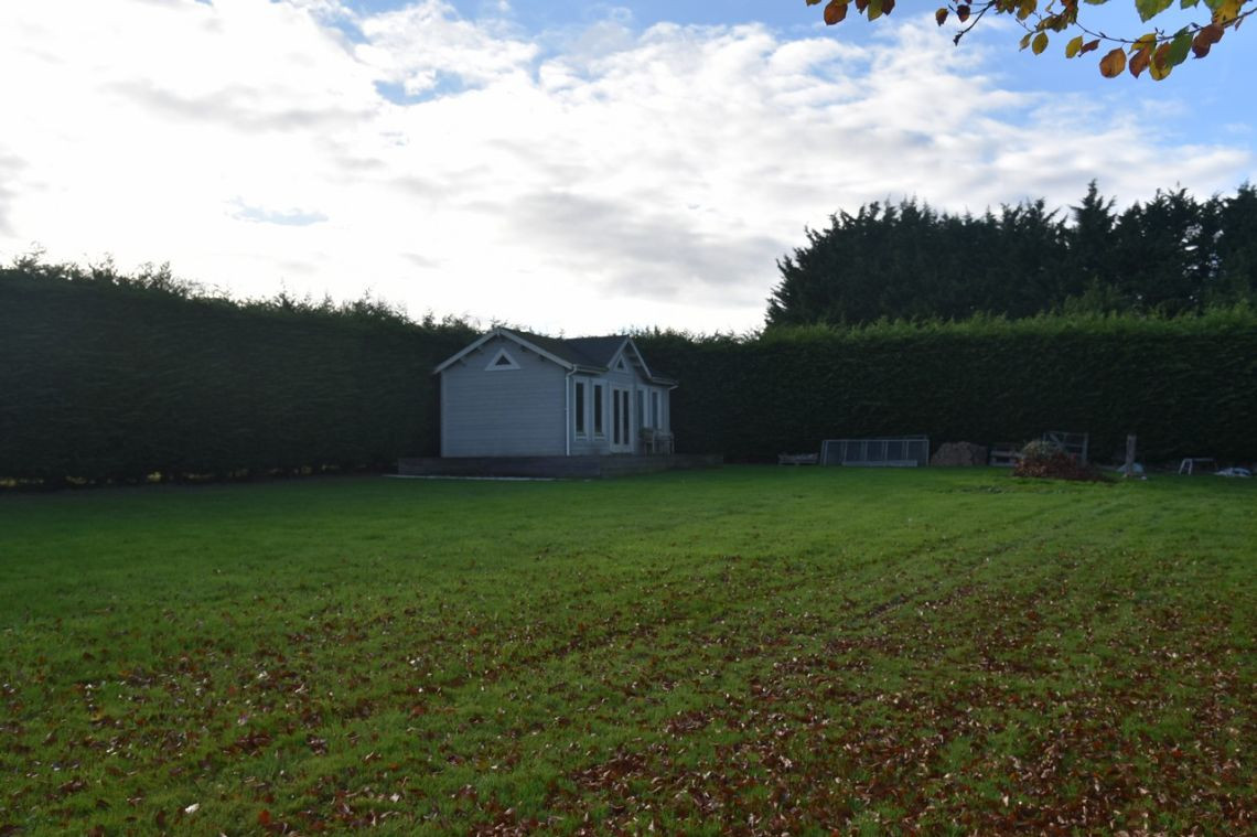 There is a large driveway leading up to the property providing ample parking spaces and filming opportunities. There is a separate two bedroomed cottage with a round jacuzzi on the patio. Several outbuildings including garages, workshops and summerhouses are spread throughout for property. Near to the main house you will find an outdoor swimming pool with a cover, this is completed by a small summerhouse and patio area. There are several other patios and lawned areas surrounding the property. Four acres of fields and stables complete the outdoor spaces.