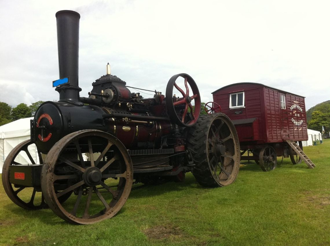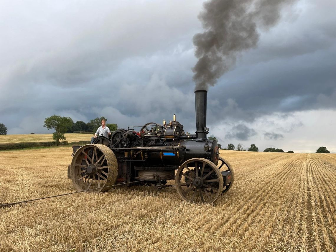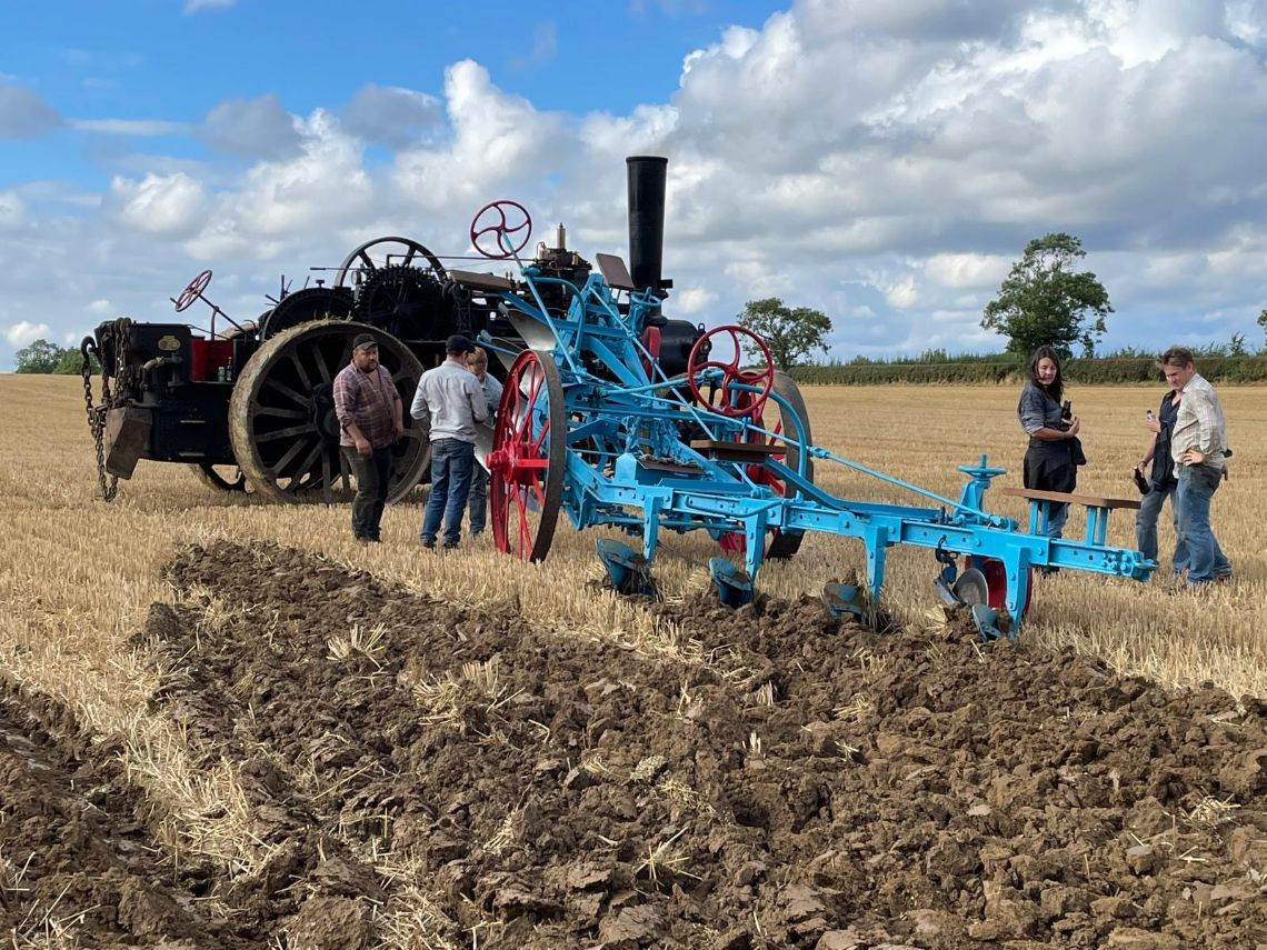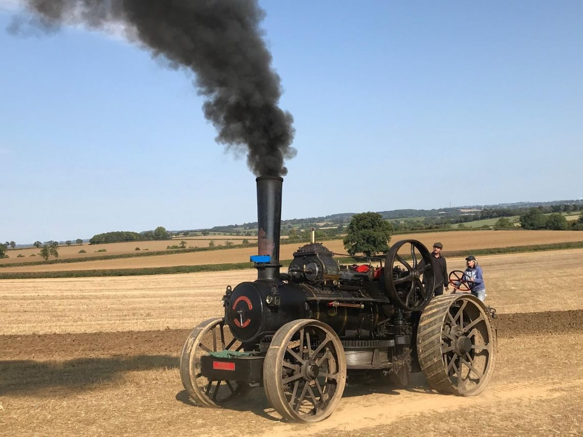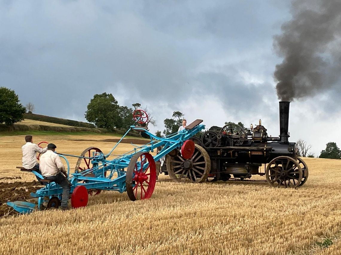 Pair of fowler AA7 ploughing engines with ploughs workers living vans and water cart available for filming and video shoots