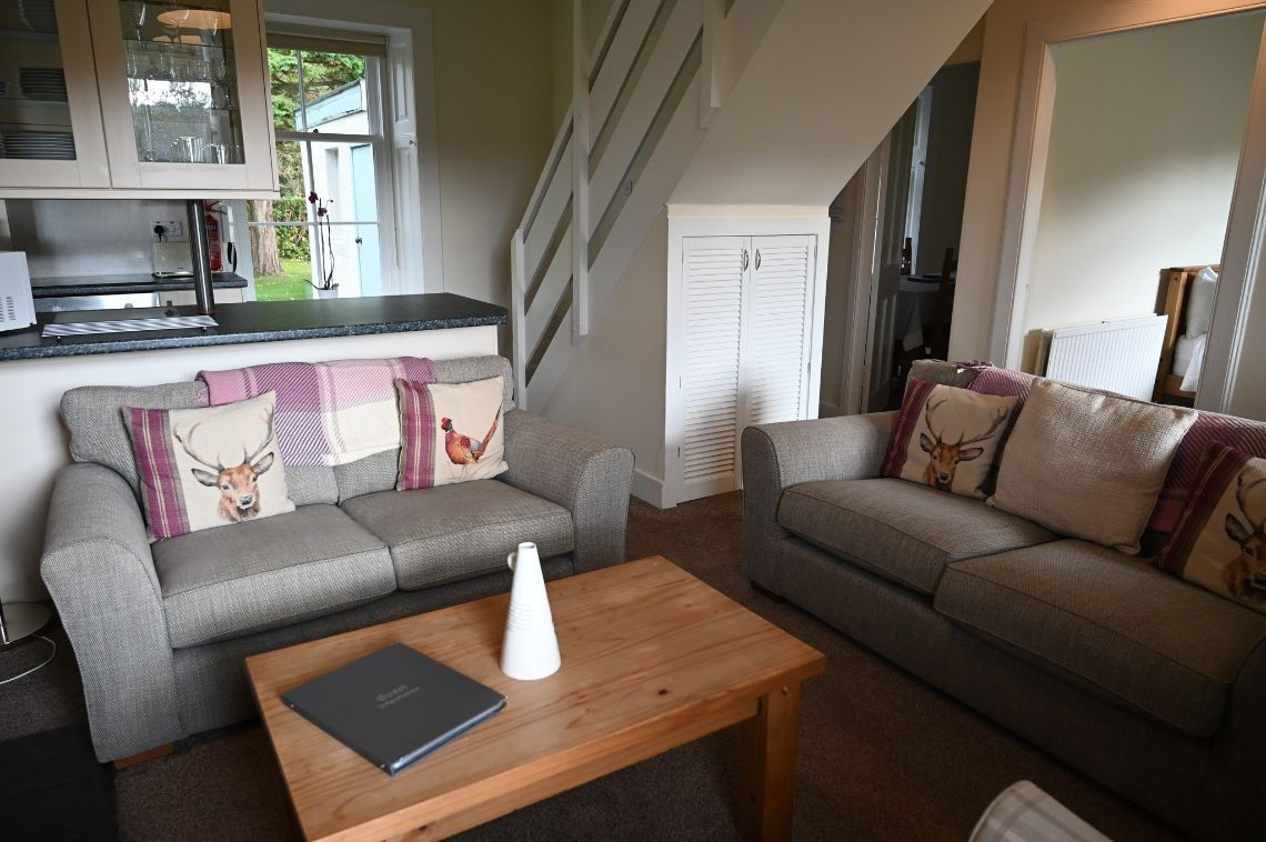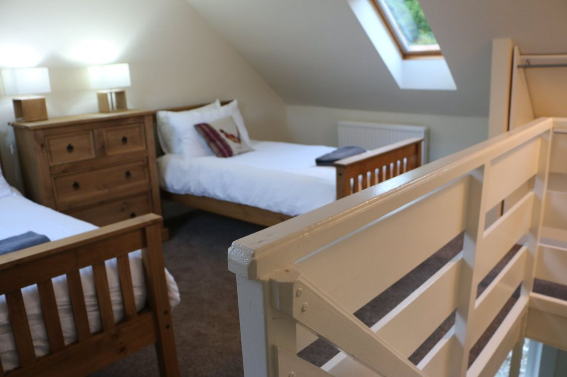This cottage sleeps up to six guests in one double room downstairs, a twin room upstairs which leads to an adjoining double room. The bathroom, with over-bath shower, is located downstairs.