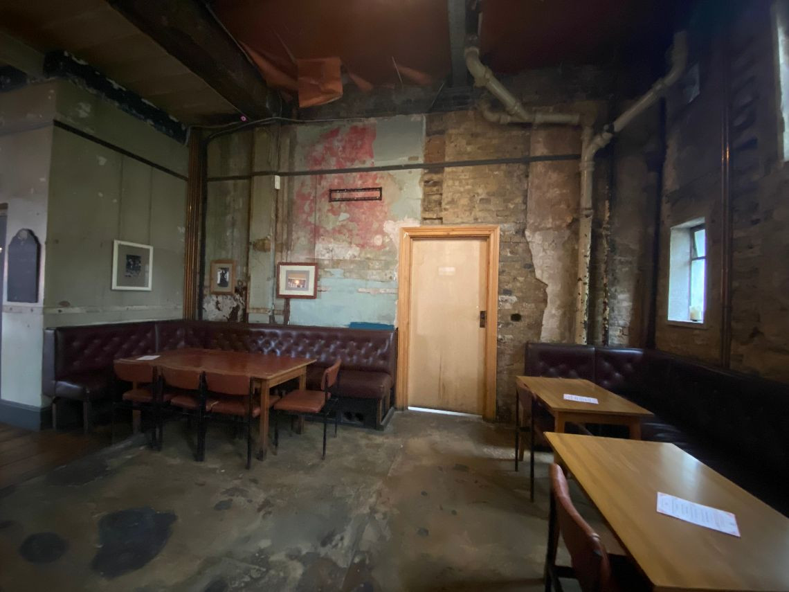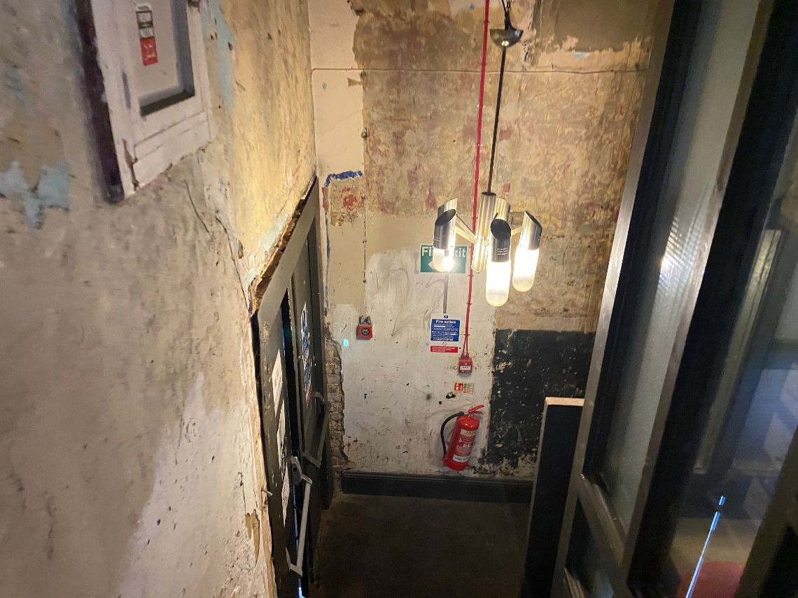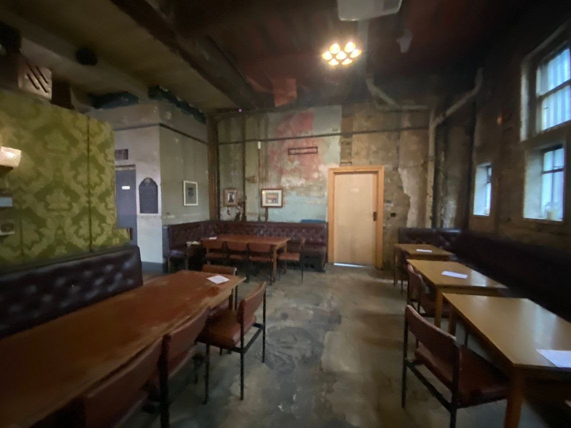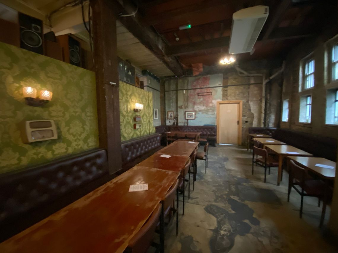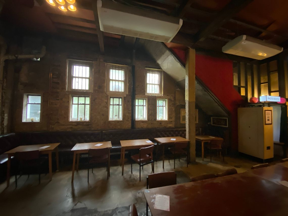 It has the street level floor which is the main bar area, with lots of seating areas, textured walls, and a photo booth. Stylistically it is appealing for film. Then downstairs there is an event space which is empty most of the time. There is a bar down there too, big enough for a substantial film crew, and able to be black out as no windows. There are four toilets at the property - two on the basement level, and then two on the first floor above the main pub. There are also three more floors above the pub that are currently disused and derelict, but spacious and can be made safe for a film crew.