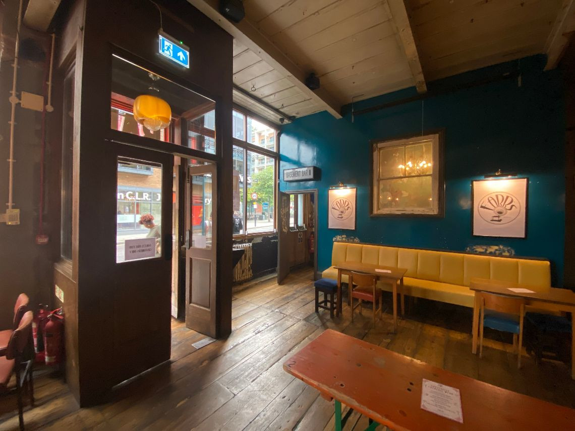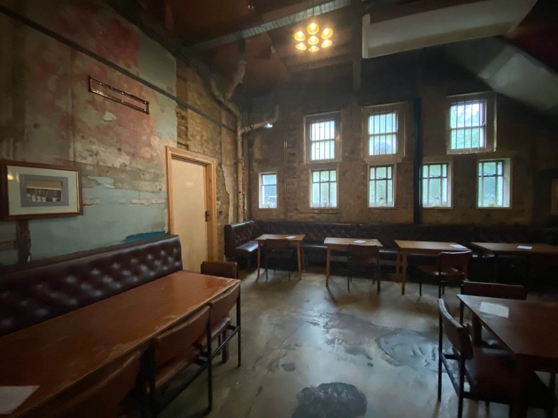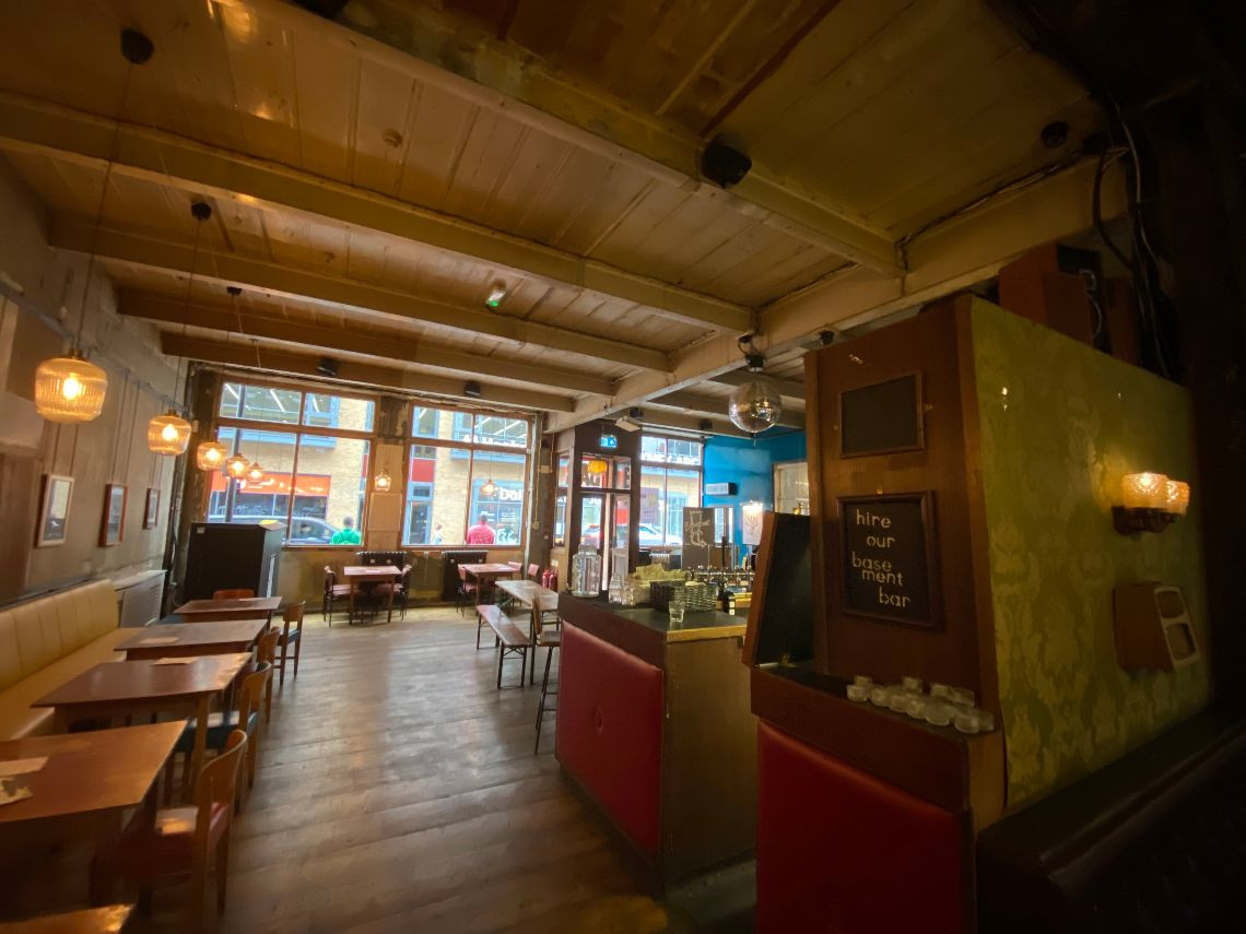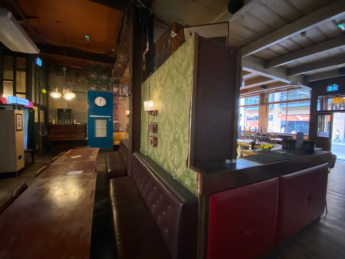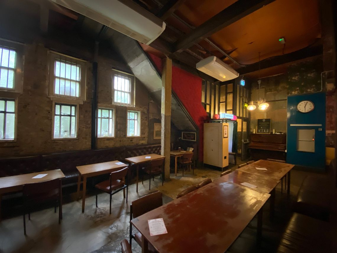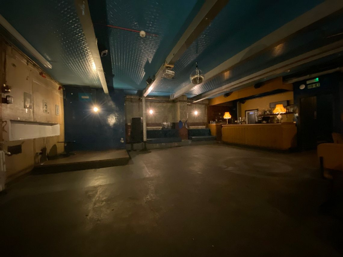It has the street level floor which is the main bar area, with lots of seating areas, textured walls, and a photo booth. Stylistically it is appealing for film. Then downstairs there is an event space which is empty most of the time. There is a bar down there too, big enough for a substantial film crew, and able to be black out as no windows. There are four toilets at the property - two on the basement level, and then two on the first floor above the main pub. There are also three more floors above the pub that are currently disused and derelict, but spacious and can be made safe for a film crew.