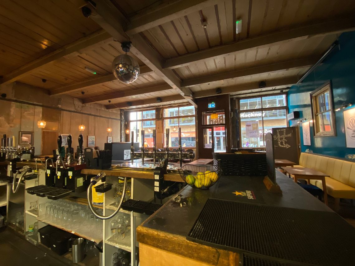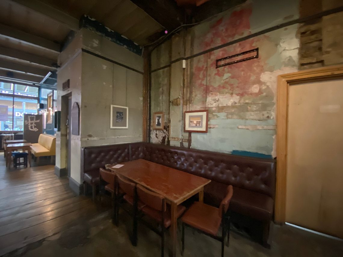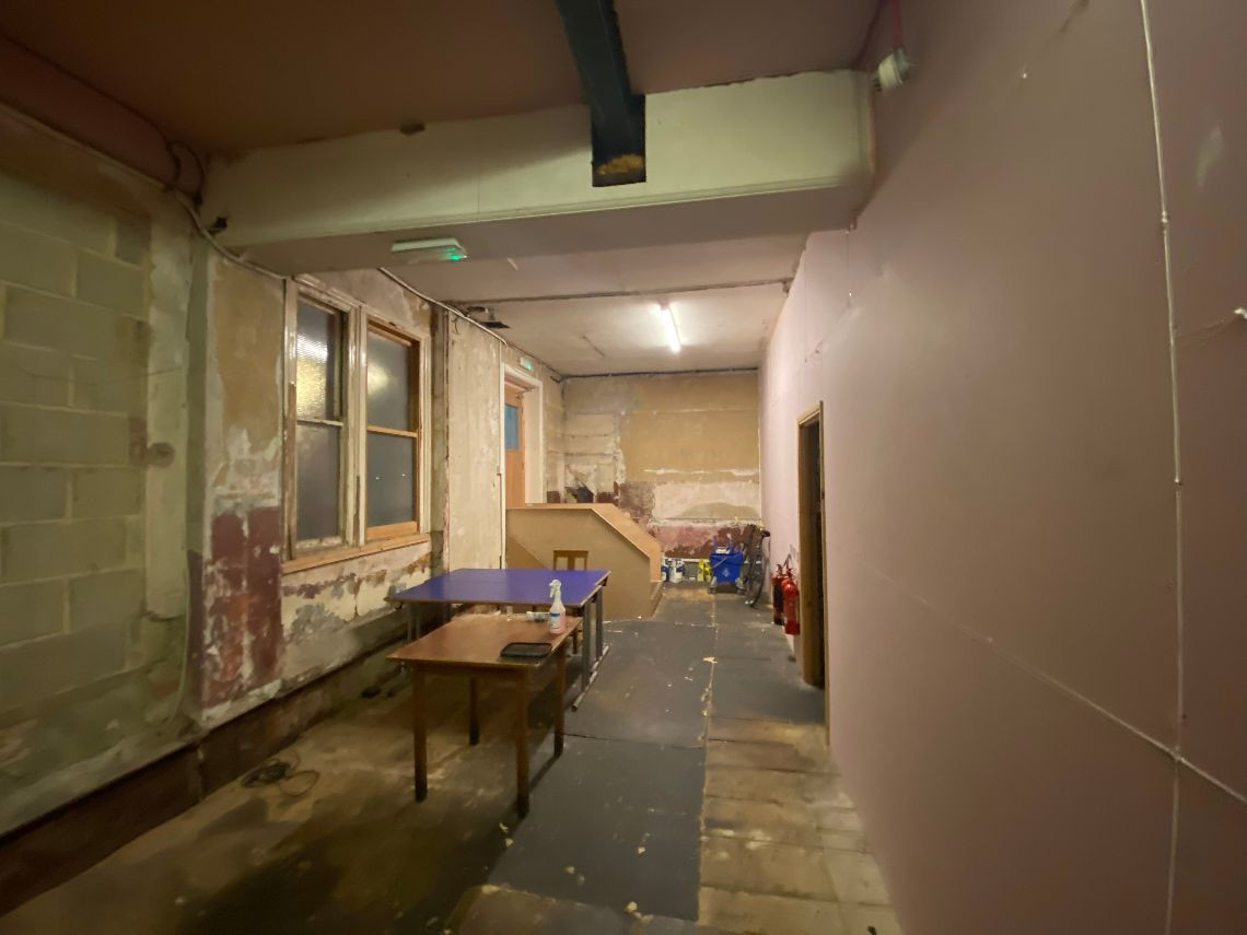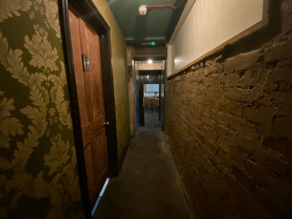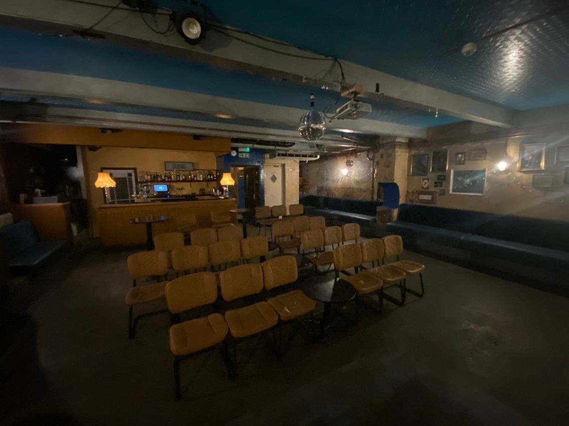 It has the street level floor which is the main bar area, with lots of seating areas, textured walls, and a photo booth. Stylistically it is appealing for film. Then downstairs there is an event space which is empty most of the time. There is a bar down there too, big enough for a substantial film crew, and able to be black out as no windows. There are four toilets at the property - two on the basement level, and then two on the first floor above the main pub. There are also three more floors above the pub that are currently disused and derelict, but spacious and can be made safe for a film crew.