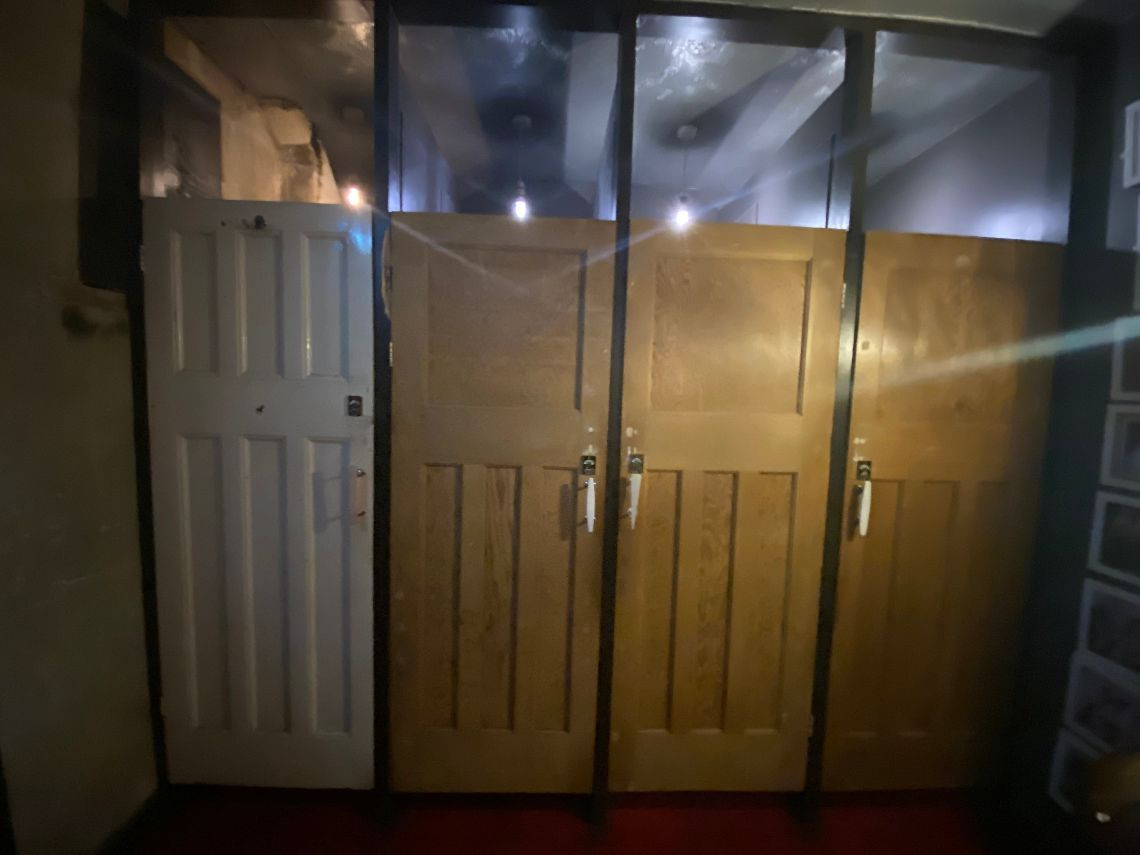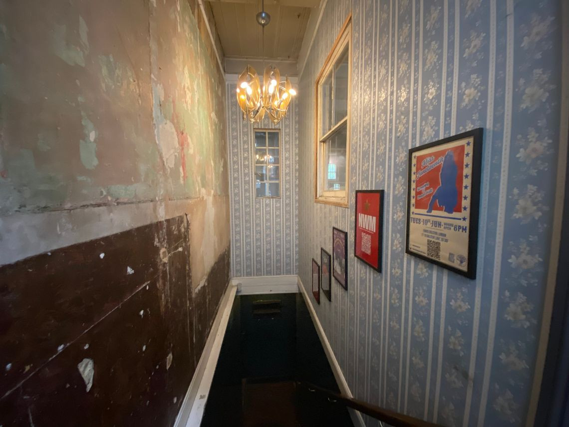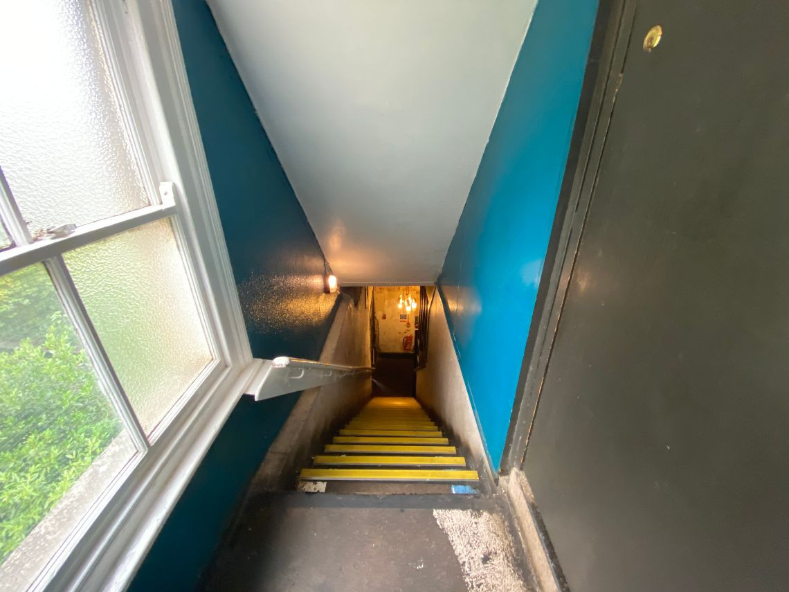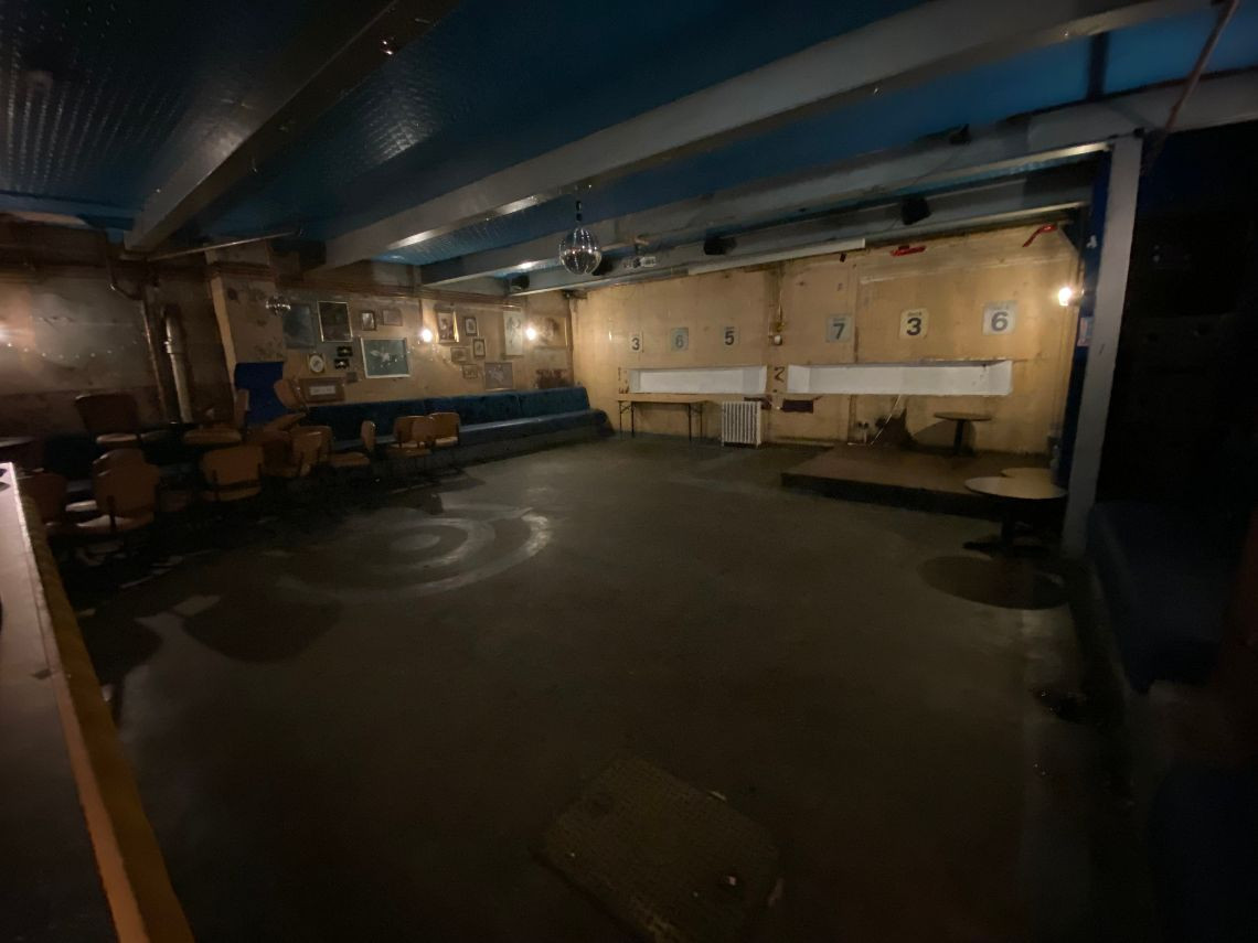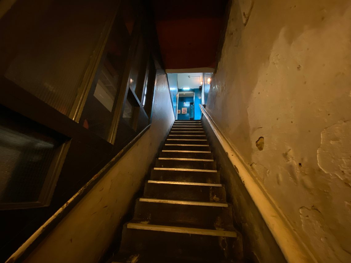 It has the street level floor which is the main bar area, with lots of seating areas, textured walls, and a photo booth. Stylistically it is appealing for film. Then downstairs there is an event space which is empty most of the time. There is a bar down there too, big enough for a substantial film crew, and able to be black out as no windows. There are four toilets at the property - two on the basement level, and then two on the first floor above the main pub. There are also three more floors above the pub that are currently disused and derelict, but spacious and can be made safe for a film crew.