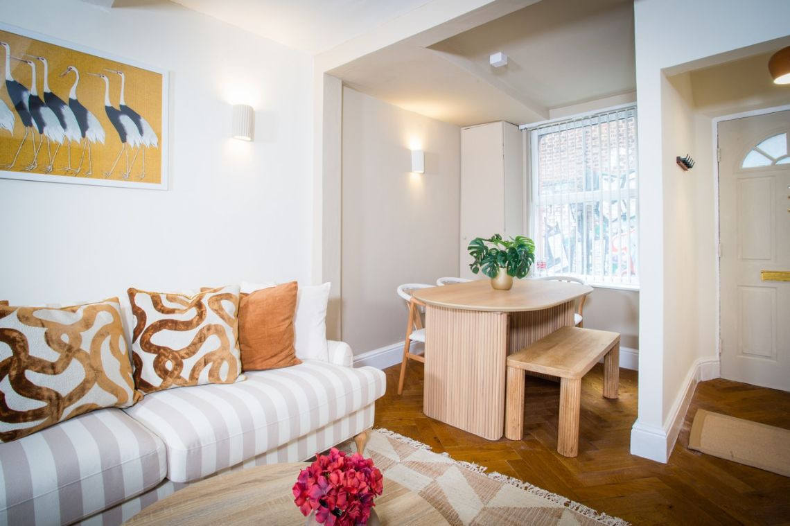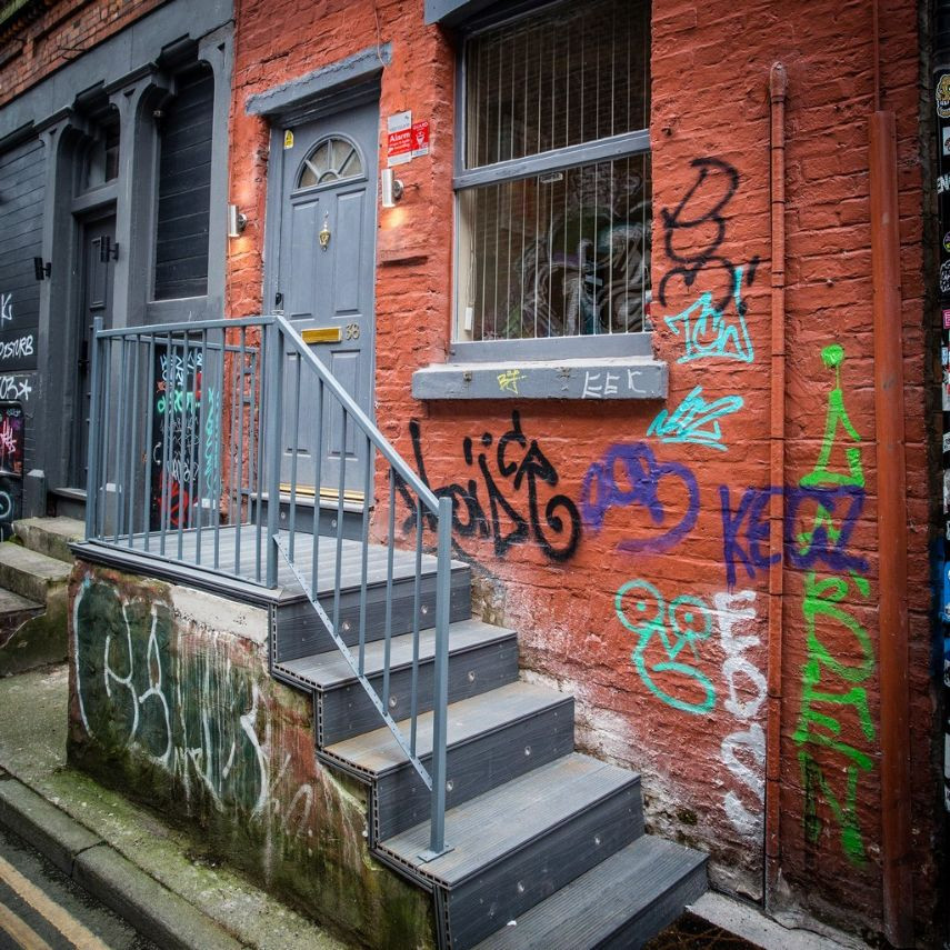 This is in the heart of Manchester and is rare to find a townhouse available. The alley outside and the graffiti on the exterior gives it a gritty alternative look compared to the interior.