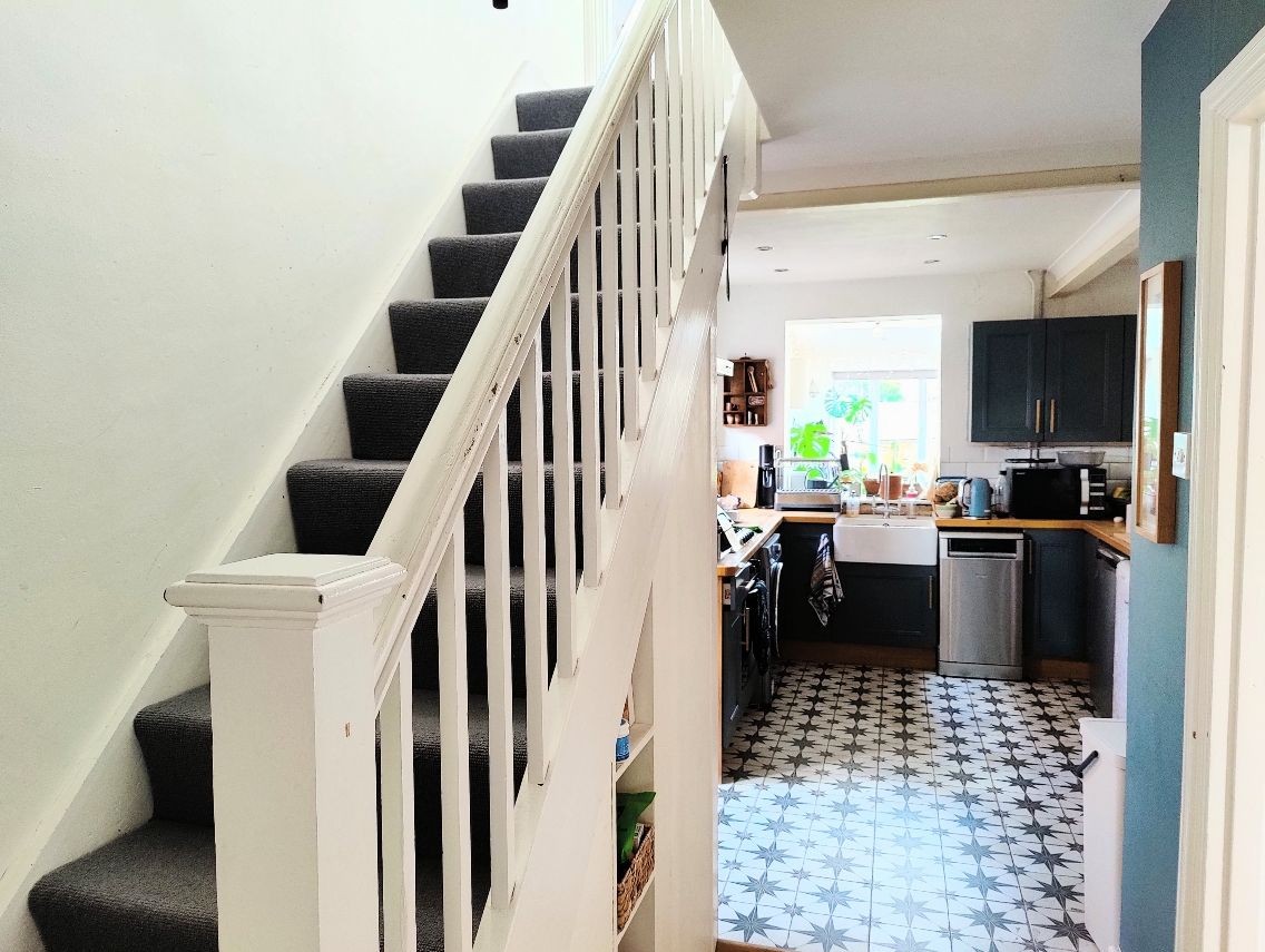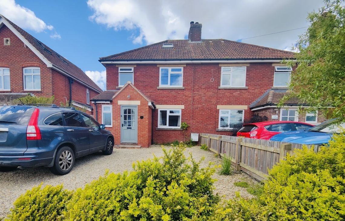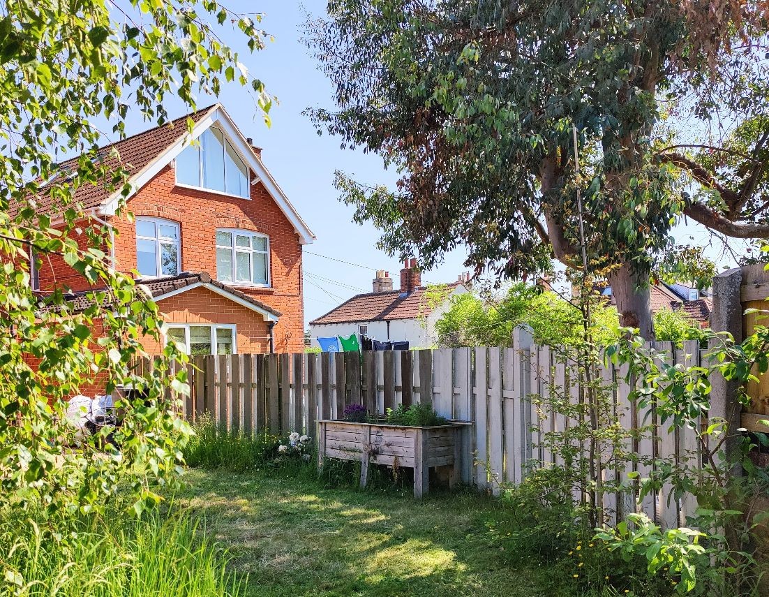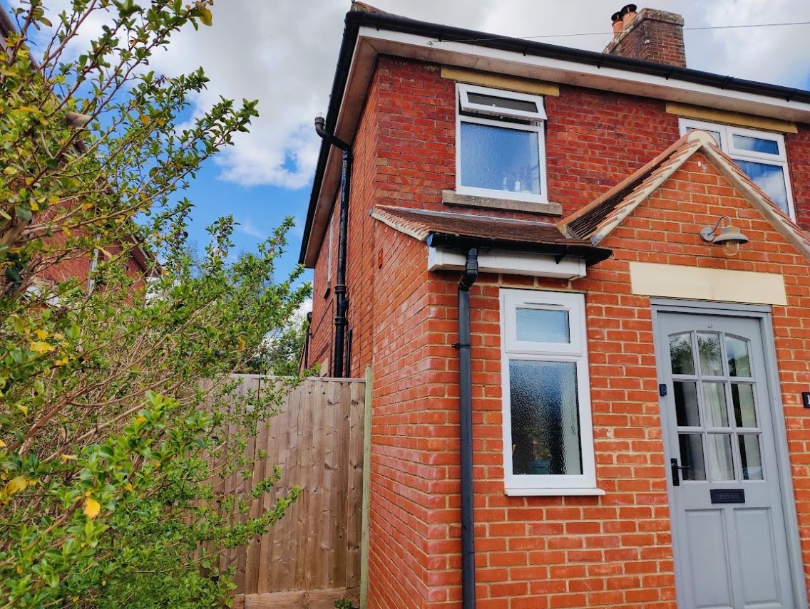 A semi-detached red brick house. The house has quite a large and long rear garden and a front drive (fits 2 cars). Large recently built decking in the back. 2 bedrooms, office/walk in wardrobe, separate sitting room downstairs and a bright, open plan kitchen diner living room. Recently renovated bathroom upstairs and a small toilet downstairs. Two log burners.