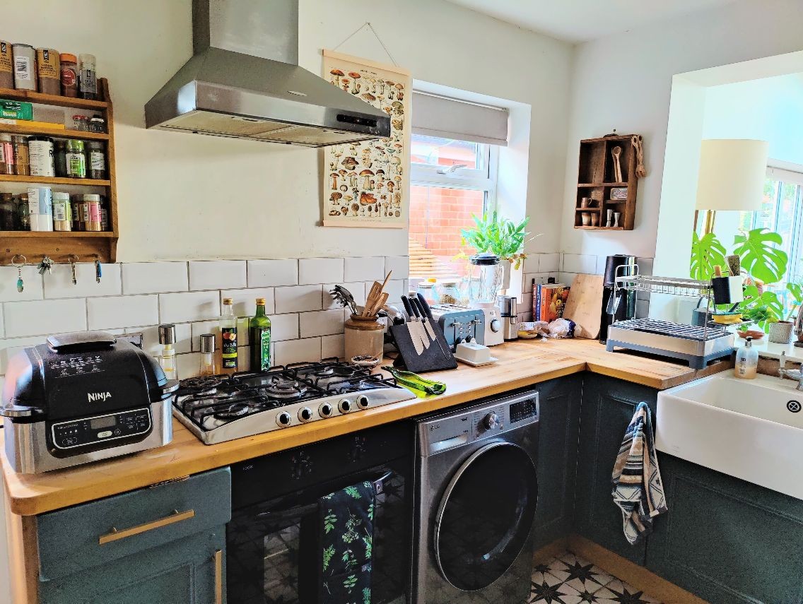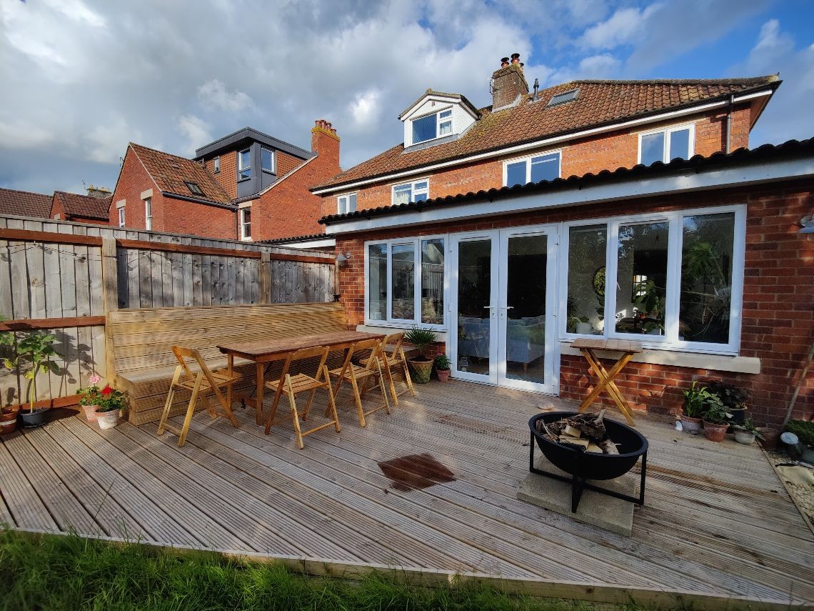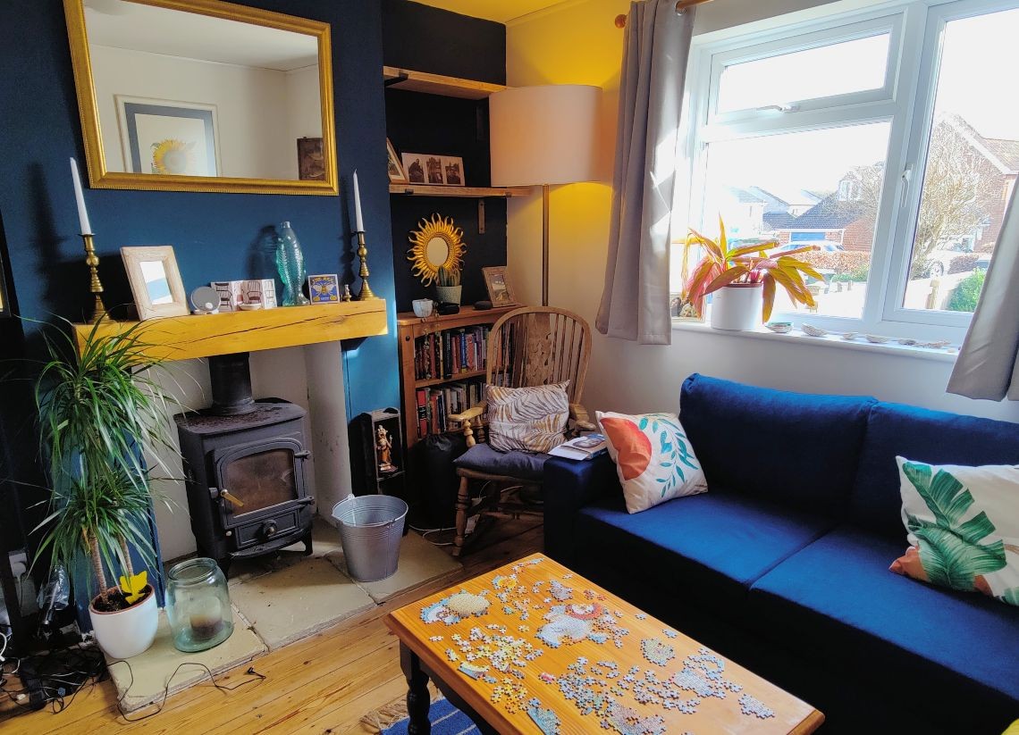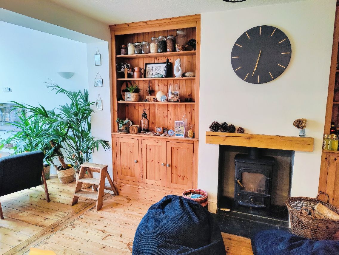 A semi-detached red brick house. The house has quite a large and long rear garden and a front drive (fits 2 cars). Large recently built decking in the back. 2 bedrooms, office/walk in wardrobe, separate sitting room downstairs and a bright, open plan kitchen diner living room. Recently renovated bathroom upstairs and a small toilet downstairs. Two log burners.