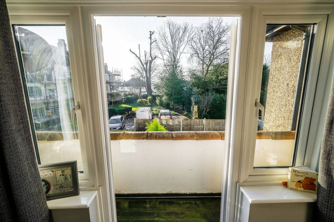 The property features a south facing balcony that comes directly off the living room. Down stairs there is also a segment of garden that belongs solely to the property.