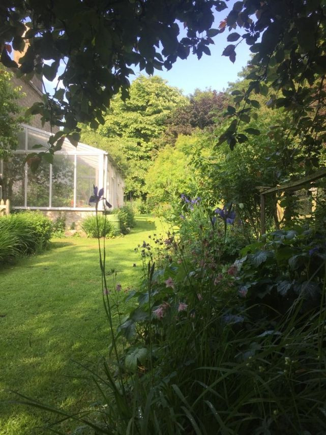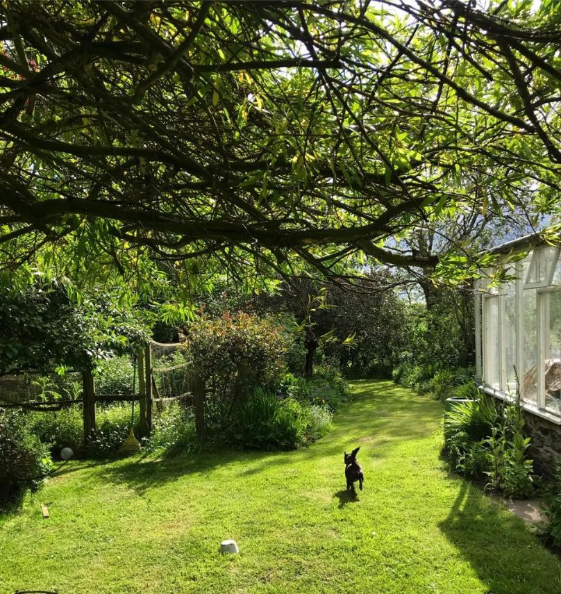 The property is surrounded by three acres of land and a small forest. There are large glass greenhouses in the garden. The garden features lawns, patio areas and lots of trees and shrubbery.