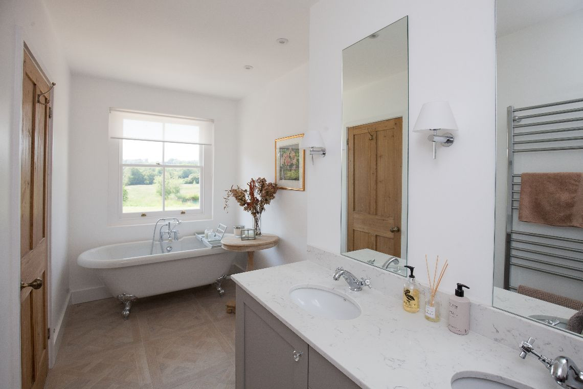 Main House: Reception hall | Entertainment barn with open-plan dining, sitting and bar area | Sitting room | Open-plan kitchen/breakfast room, Back kitchen | Study | Utility room Boot room | Store | Three cloakrooms. Main bedroom with en suite shower/bathroom and dressing room | Four further double bedrooms | Two en suite shower rooms | Family bathroom.